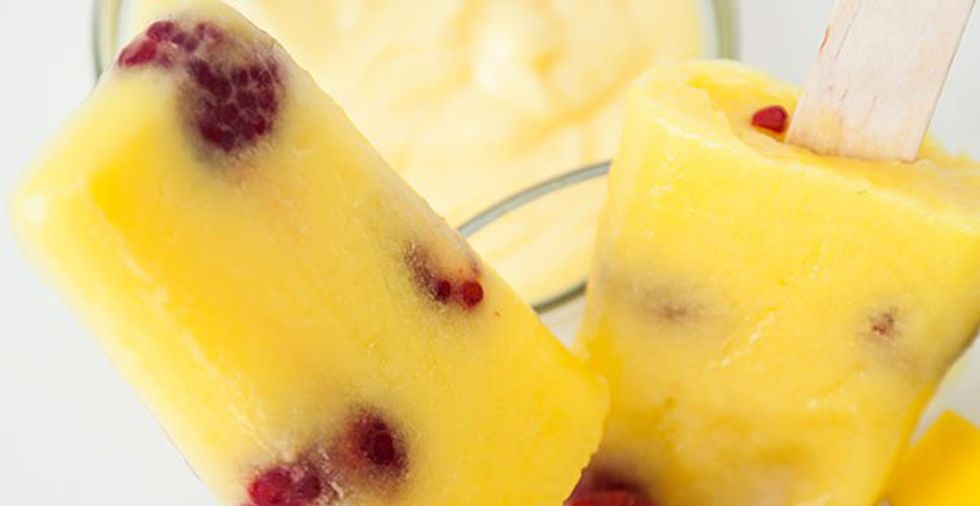 Mix mango juice, simple syrup, lemon juice, and vodka in a pitcher. Stir until everything is well incorporated. Add the fresh raspberries to the popsicle molds. Pour the vodka mixture into the molds. Freeze for 18-24 hours.