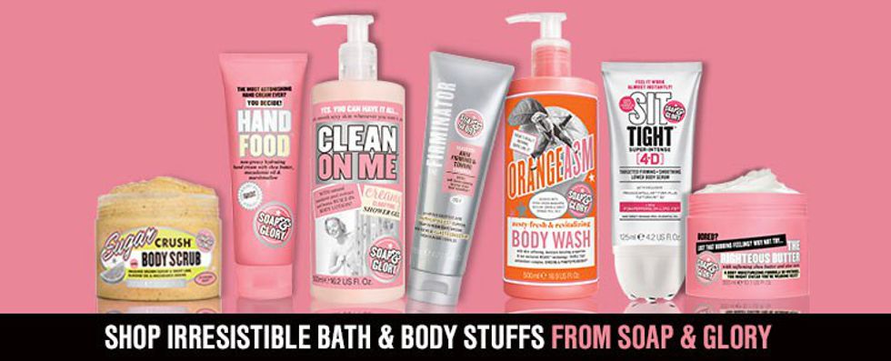 If you've never heard of Soap and Glory, you're missing out. Their bath products smell heavenly and their cute names make you want to buy them even more. (My favorite are the body scrubs, but the hand/feet creams are great as well!)
