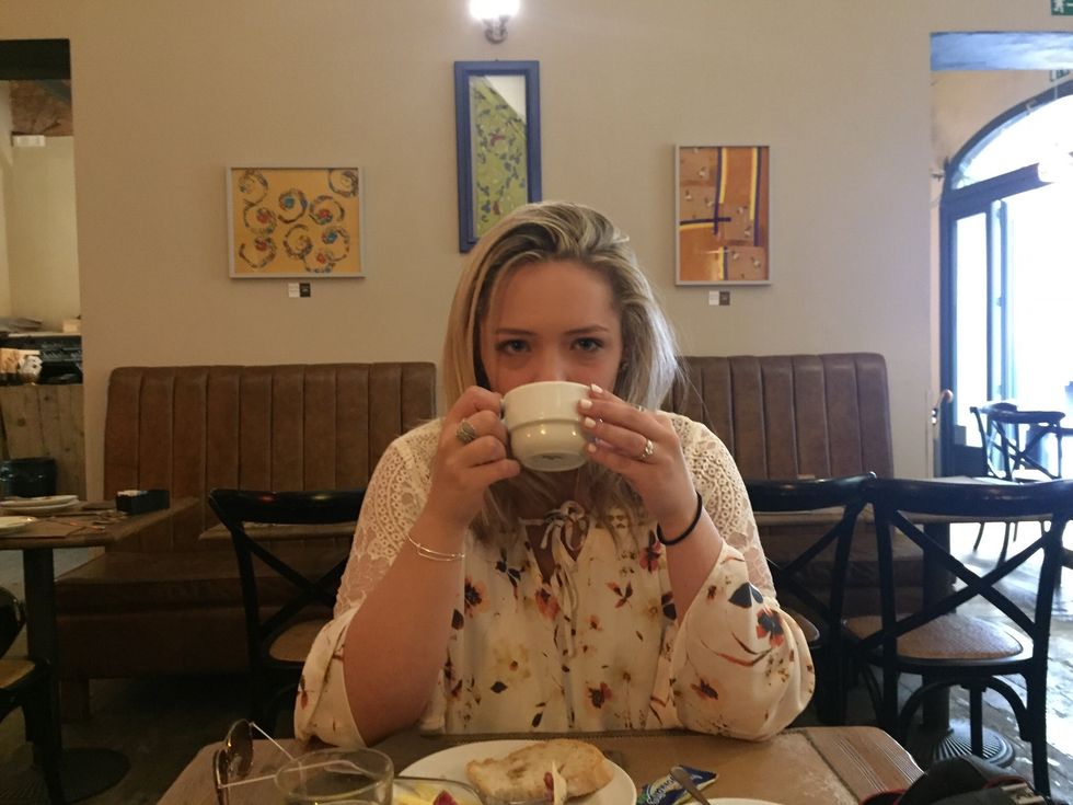 On the bright side, we actually got to eat breakfast where I had my first cappuccino and it was gross, until I poured two-three packets of sugar into it lol.