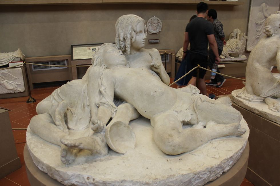 You probably can't tell, but there are three figures, each in a different position. the statue is called: love, vice, wisdom (the sleep of ill-fated virtue and of lustful opulence; the disc of loves; the world)