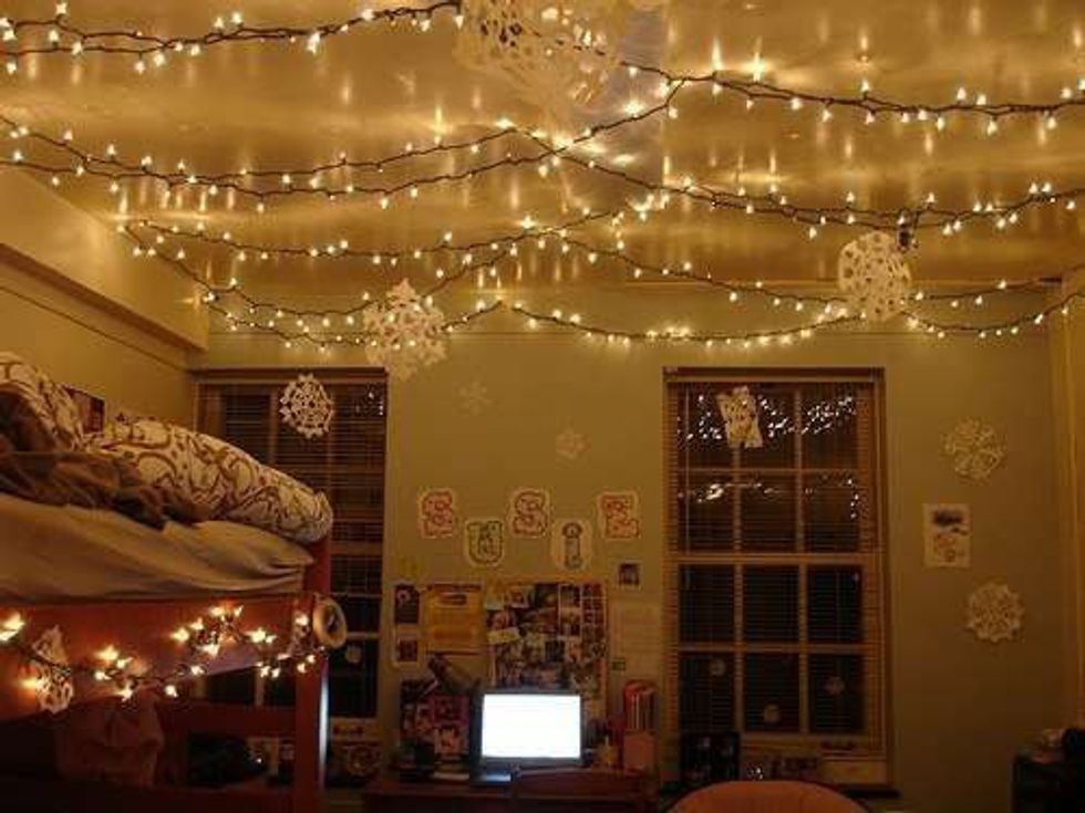 Having other forms of lighting make the room look softer and more inviting. I highly suggest using Christmas lights as they are one of my favorite ways to light the room. White lights are the best with the white roping as they create a more inviting look to the room.