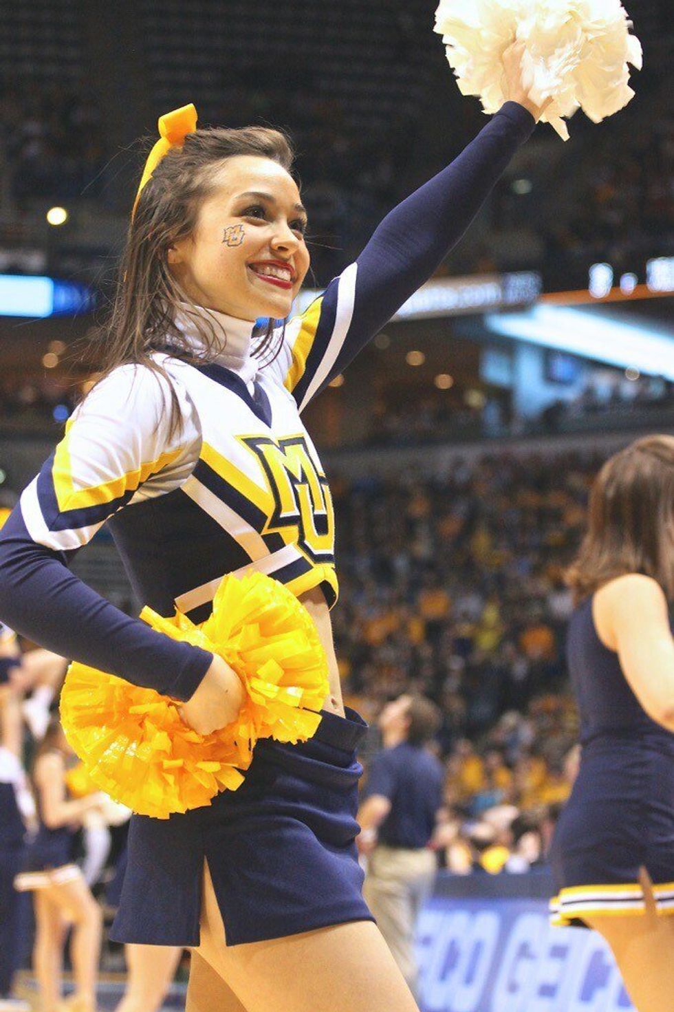We have the best seats in the house. We arrive two hours earlier than any other fan. We smile even when we're losing. We sweat just as much as the basketball players. We are college cheerleaders.