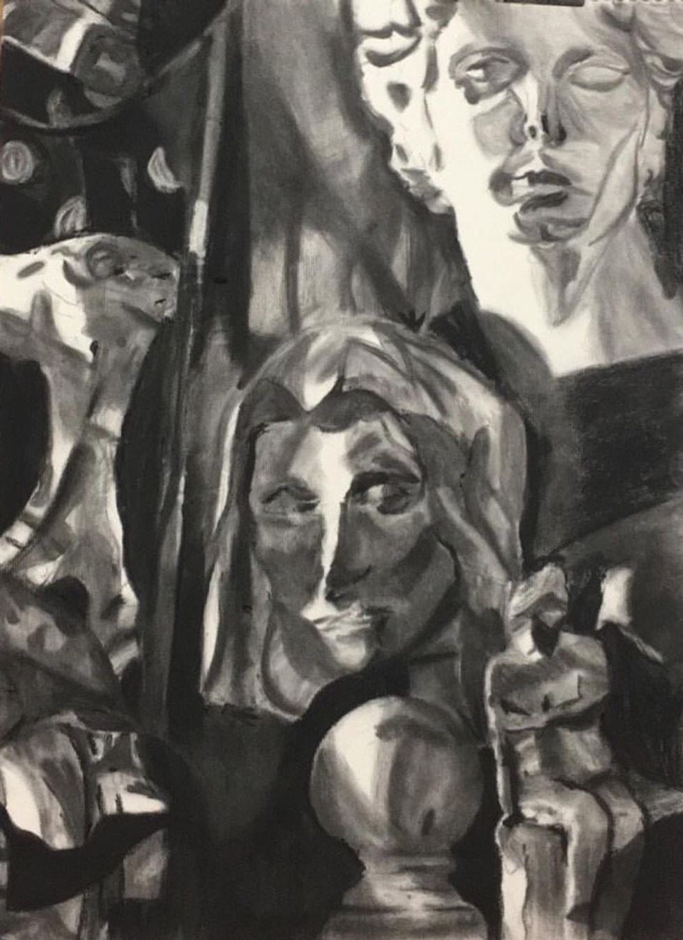 However, I took his advice, and several hours later, I found myself covered head to toe with charcoal with this in front of me - a piece of work of which I was and am so incredibly proud. This final made me realize that all the hard work I put into the semester finally paid off, because I learned something, about art and myself. A piece of art is never really done. You can work for hours, days, weeks, and years to finish a piece, and there will always be something more to add. However, the lesson I learned about myself is that learning doesn't come from making a grade. Learning comes from putting the extra hours in, and making something of which I can be proud.