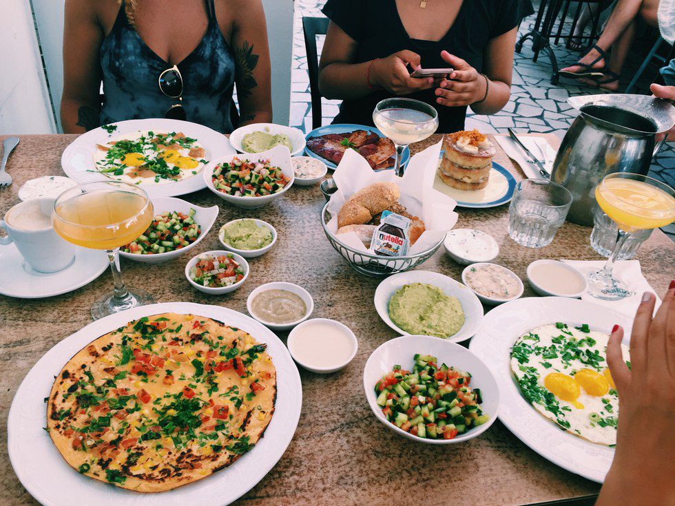 I ordered the vegan omelette with a side of Israeli salad and avocado hummus, washed down with an orange mimosa of course ;)