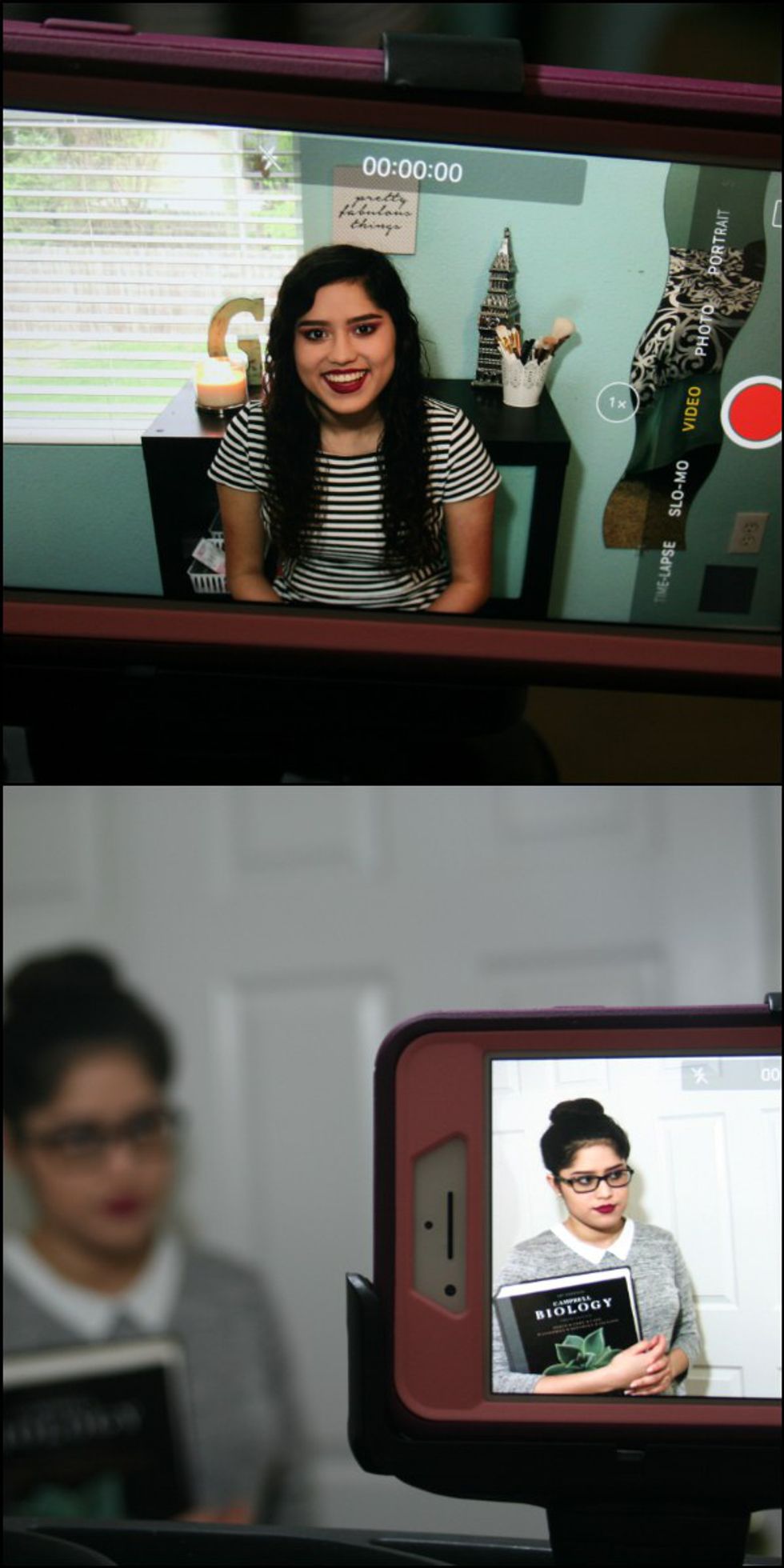 Most YouTubers, even people starting out, have a camera and a tripod to film with. For Gaby and I, we have an iPhone 7 and a selfie stick. When looking at pictures of the set-up for our videos it seems absolutely ridiculous, but you have to work with what you've got; our trusty duct tape hasn't failed us yet. It takes a lot of time to set up the selfie-stick to get the right angle for the shots that we use, and it also takes a large amount of duct tape to keep everything in place. So while Gaby is getting ready for the camera I spend my time setting up the phone and making sure the lighting is perfect.