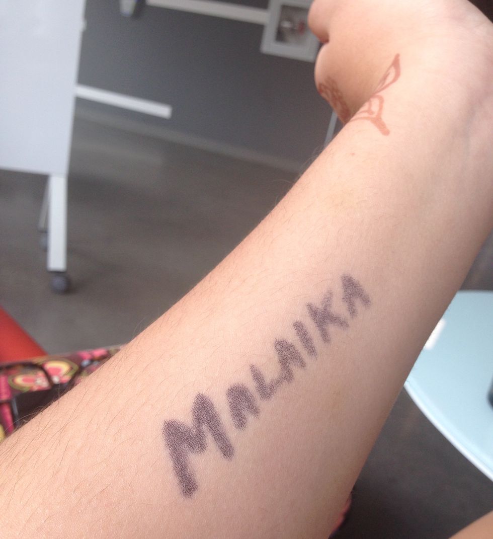I was at a party and it was loud and I was tired of having stunted conversations about my name, so I wrote it on my forearm in Sharpie and that was one of the smartest things I've ever done. I don't know what it's like to introduce yourself in a loud room when your name is Emily or Rachel, but when your name is Malaika it is an absolute shitshow and after repeating myself five times it gets exhausting. So instead I'd just hold out my arm and they'd read my name and all my problems were solved, and I didn't have to say "No, Malaika, with an m" or "No, the middle part rhymes with bike" I'd just point and we'd move on to more interesting things.
