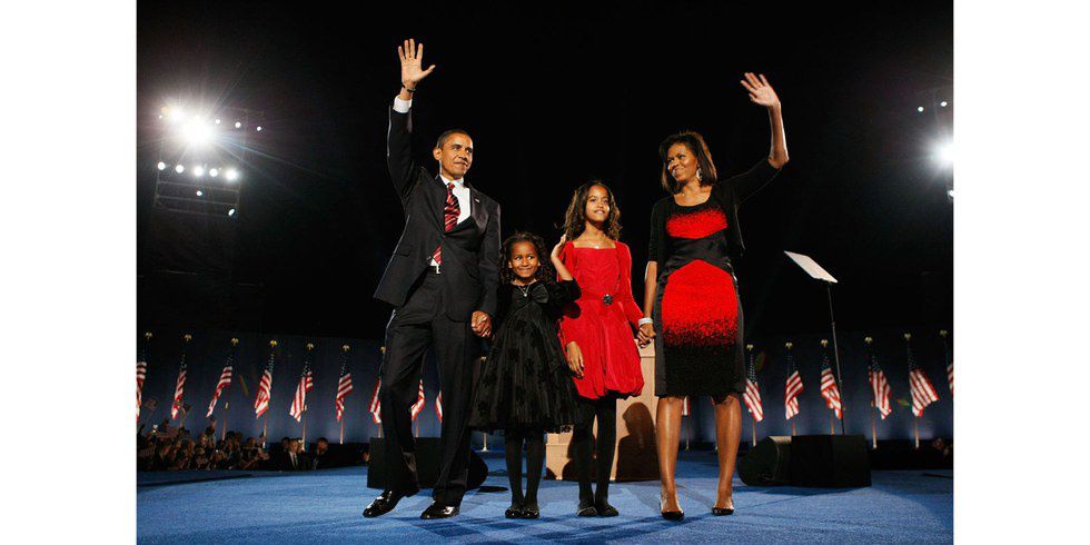 Look at this beautiful family. Can we go back to this day? Malia and Sasha look adorable in their coordinated outfits.