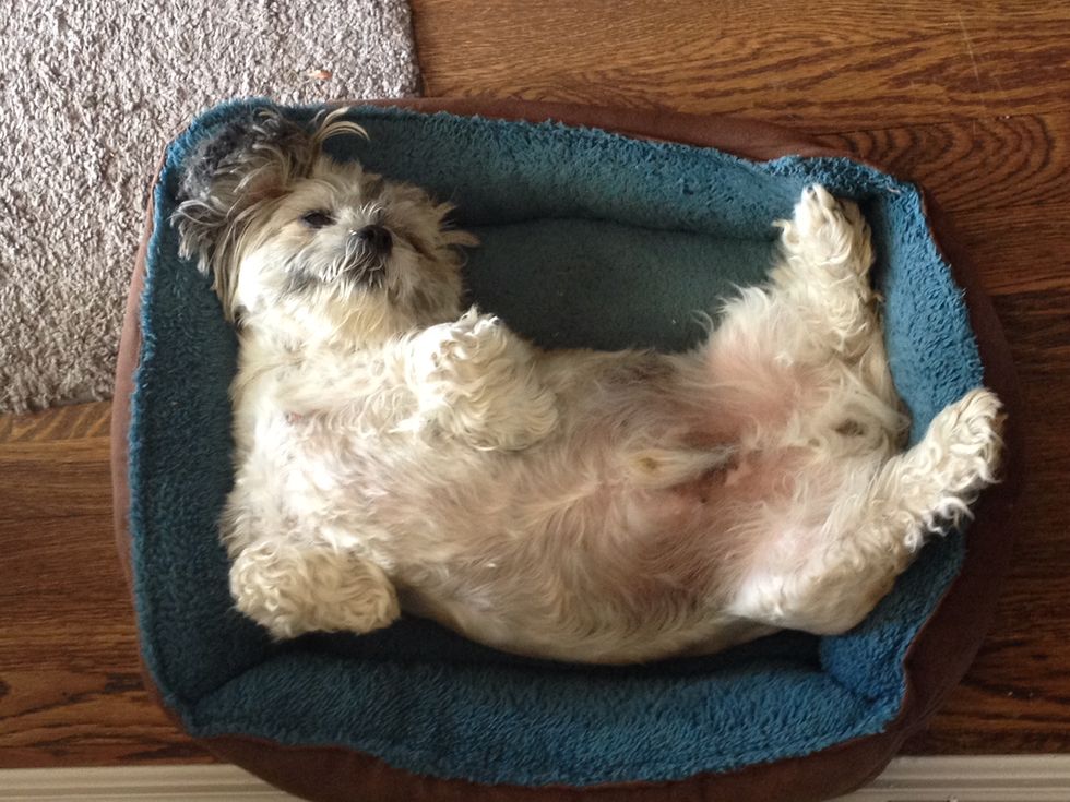 He also has no control of his bladder. He'll go while he's eating, running, climbing stairs. You can tell he gets embarrassed when it happens. He'll go to the corner of the room and start chewing on a bone and looking around.
