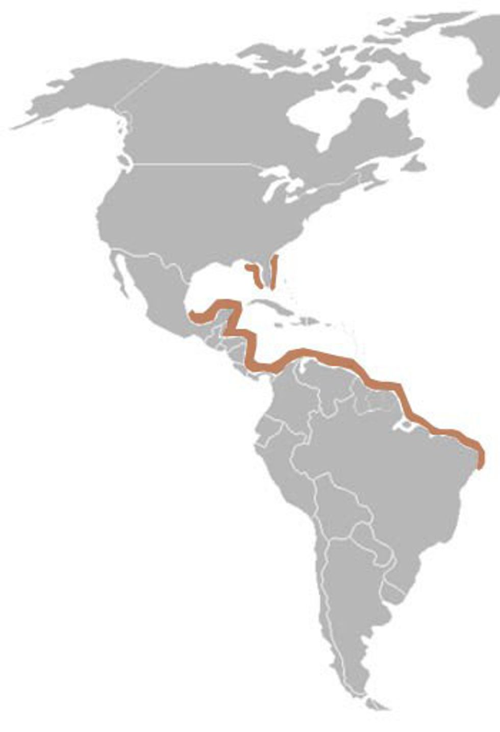 The map pictured below gives a rough image of the areas the West Indian manatees inhabit.