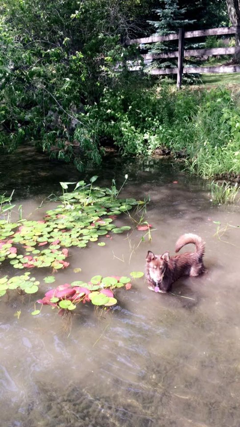 I live for the water vicariously through you. The second your eyes land on any source of liquid, you go for it. You spend at least 30 minutes in the pond daily and anytime you're taken to some sort of lake, there's no catching you.