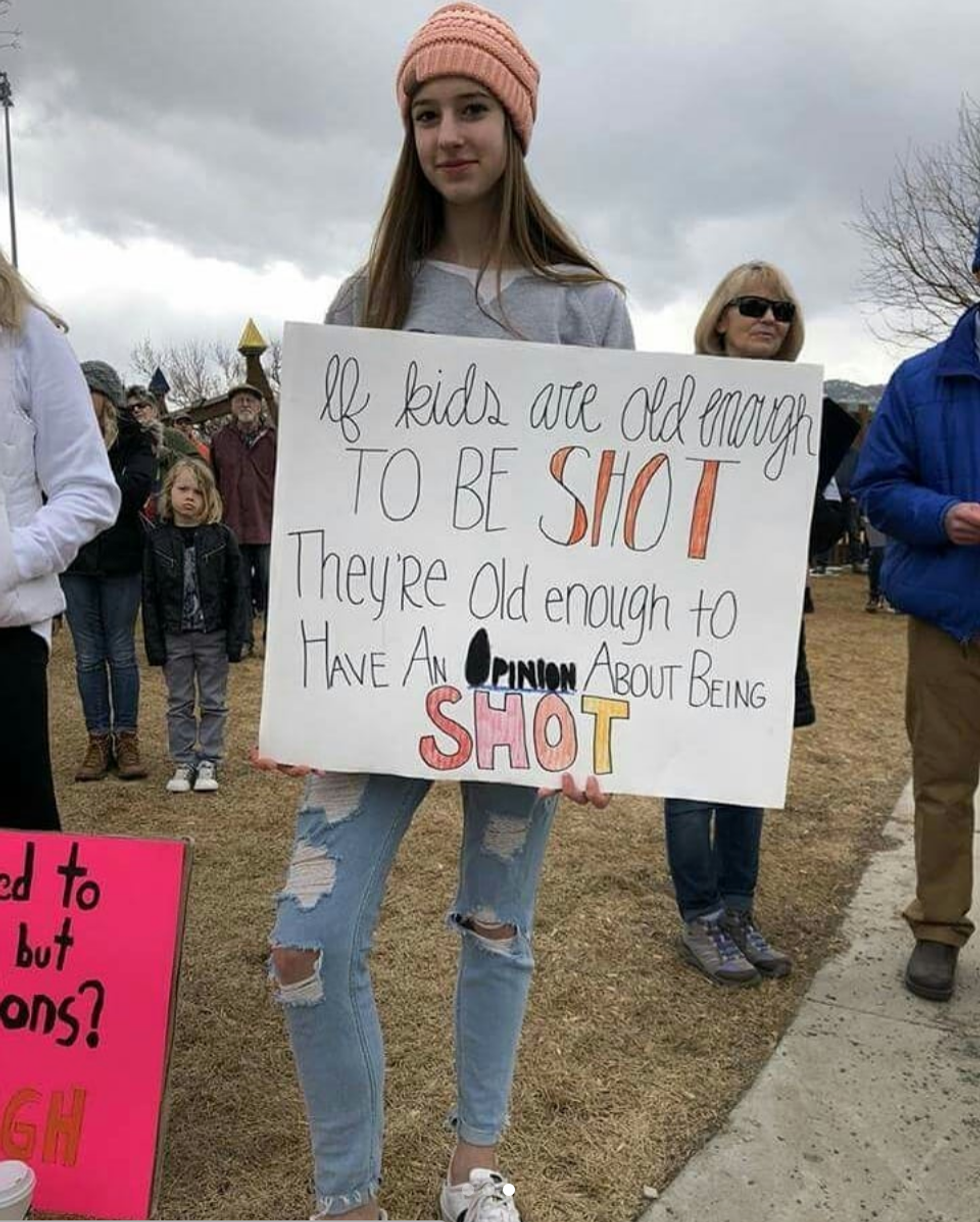 Scrolling through Instagram lately, I’ve seen so many pictures and sayings that have inspired me to stick up for my beliefs. One picture I saw on Instagram depicts a student holding a sign that says, “If kids are old enough to be shot, they’re old enough to have an opinion about being shot.” The reason this picture stands out to me is not only because of the words on the sign, but also because of the girl holding the sign. This girl is wearing ripped jeans, Adidas Superstars, and a C.C. hat, all items that I have and wear all the time. I’m a kid, just like her. It’s amazing to see people just like me standing up for themselves. The words on the sign also stand out because she makes a good point. We all deserve to have a voice and share our thoughts on gun violence.