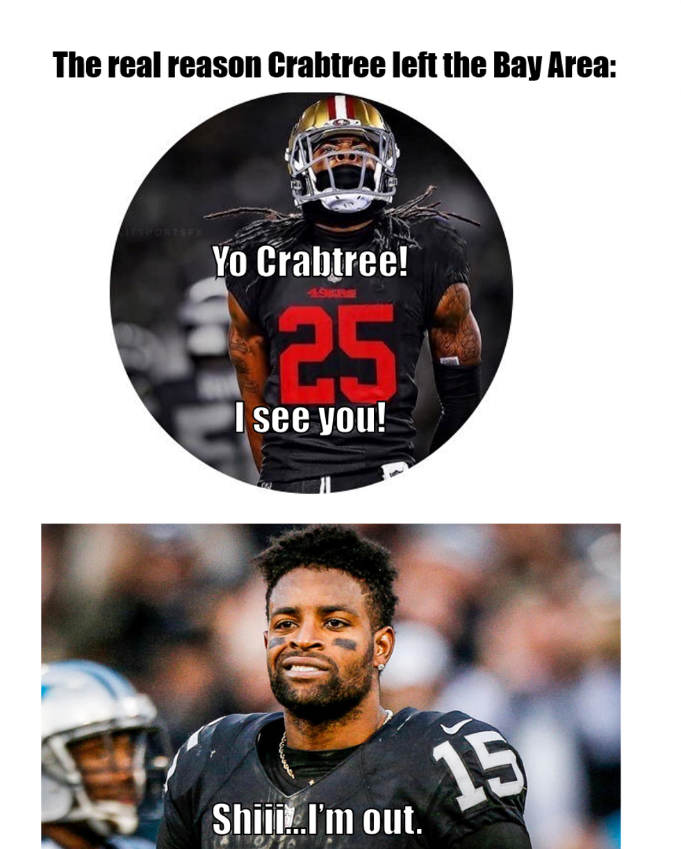 And ironically, just shortly after Richard Sherman made his arrival on the other side of the Bay Area, Michael Crabtree packed his bags and left Oakland, signing a three-year contract with the Baltimore Ravens. The two events are likely unrelated, since the Raiders had released him to sign Jordy Nelson after all. But still, the timing was priceless, considering Sherman's and Crabtree's history.