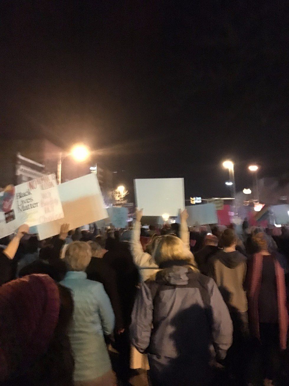 It was probably around 6:30 pm when two of my gal pals and I entered the march. It was crowded with people of all ages, genders, and races. This was a picture of the American Melting Pot. We marched through Omaha’s Old Market and headed back to Century Link Stadium for an hour long march. I honestly felt safe with the people around me and bystanders were supportive of the cause. The police of Omaha ensured the safety of everyone.