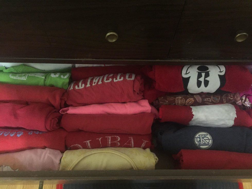 I was so inspired by how much cleaning changes people's lives. The people in the show were so much happier after tidying up and I wanted to experience that joy. After watching an episode I began to tidy up the drawers in my house. Sadly, I do not have any before pictures of the drawers since I was too excited to tidy (shocker I know). The drawers were spilling at the seams and barely closed. There were shirts randomly put in different drawers for the sake of putting them somewhere. One drawer even broke and I had to nail it back together.