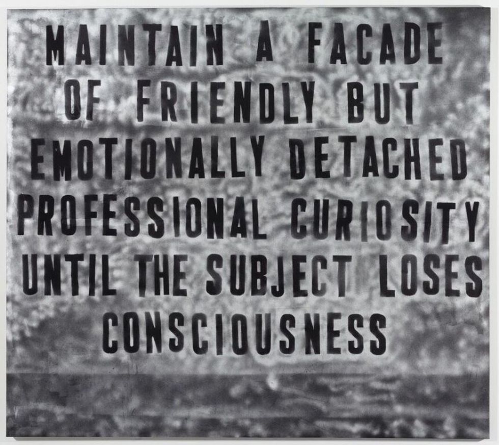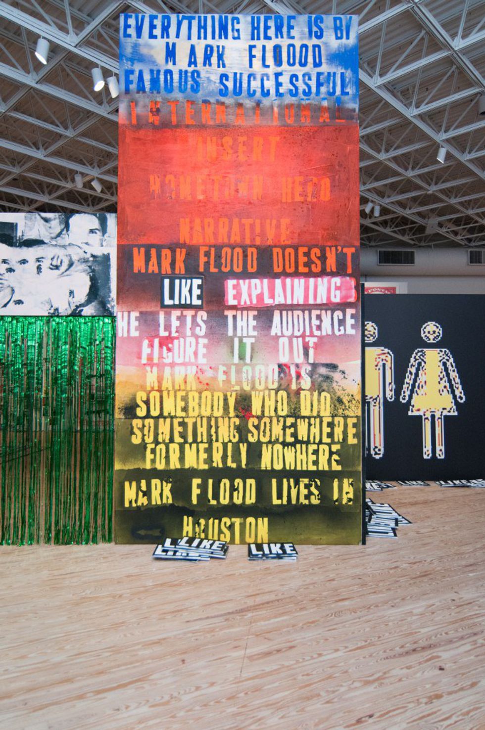I grew up in an art-loving, art museum going family. Seeing the latest exhibits as well as revisiting old favorite pieces was a part of me weekend routine as a child and, as a result, I've always loved the incredible museums available to me here in Houston. The Contemporary Arts Museum here or CAMH always has fascinating, thought provoking exhibitions. They vary in style and tone, but they never fail to impress me. While they all are enjoyable, it feels rare for an exhibit to feel as real and impactful as Mark Flood's most recent collection, "Gratest Hits" (the misspelling is intentional and is meant to represent the self-proclaimed lack of importance as an artist), which shows some of his work dating back to 1980s. Flood stated in an interview with Houstonia Magazine that “great art speaks truths that people don’t want to hear. Great art trashes the past and opens the way to the future. Great art is always a problem.” He wanted to make a statement and I feel he achieved this incredibly. As you walk in, the artist is introduced through this.