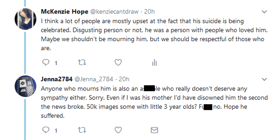 However, something about this tweet, in addition to the millions of other truly heartless words floating around the web, struck something inside of me, prompting me to post a reply. I explained how those "defending Salling" simply believed that the glorification of suicide was troubling and disrespectful to the deceased's loved ones and how it had nothing to do with "sympathizing with a pedophile" as the YouTuber had insinuated in his tweet.