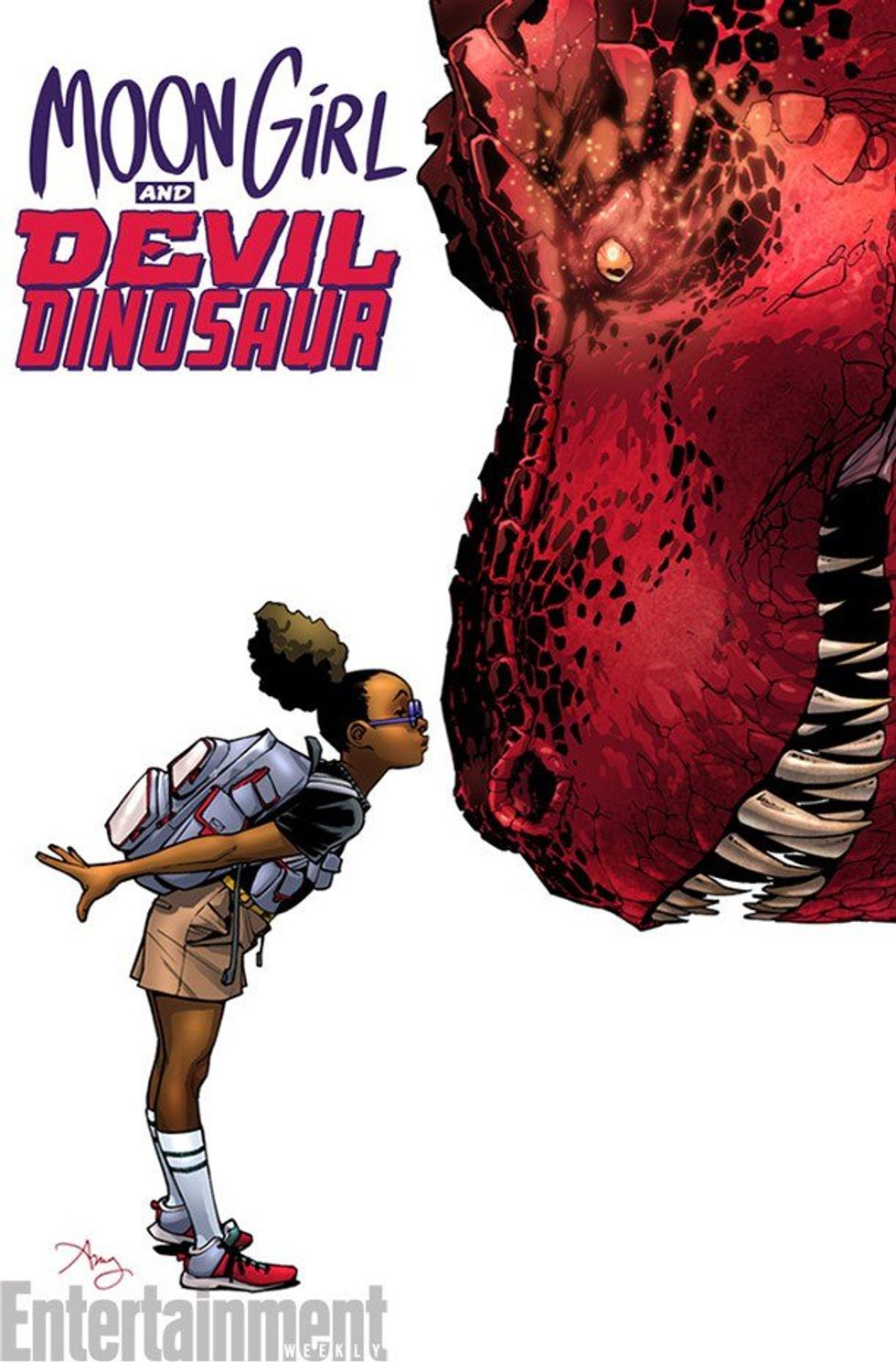 This time, they’re giving a new character mixed with an old one. Devil Dinosaur, whose old companion was named Moon Boy, has someone similar yet the same. Moon Boy is gone and in his place stands Moon Girl. She’s a preteen wandering around with a giant red T. Rex looking dinosaur. That isn’t the only change. Instead of being a caveman, she will also be a super genius.