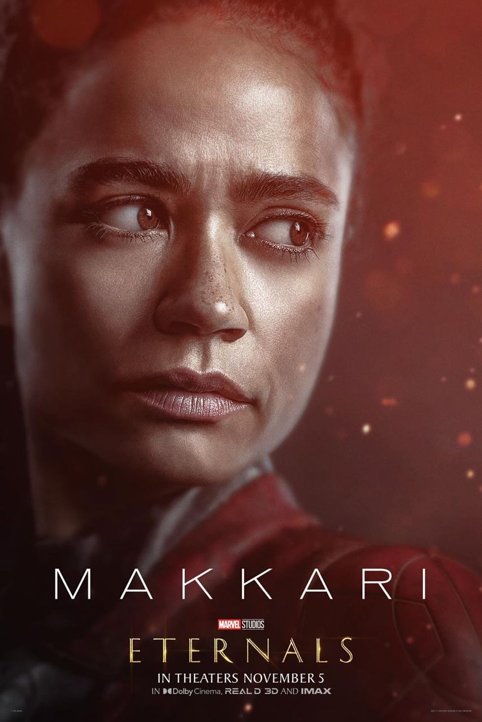 Makkari, portrayed by Lauren Ridloff, is by far the fastest of the Eternals, with her cosmic abilities allowing her to be arguably the fastest woman in the universe. Not only can she move at superhuman speeds when using her abilities, her speed also allows her to build up an extreme amount of force to enhance her attacks, make great leaps with a running start, and create sonic booms when she goes fast enough to break the sound barrier. While these sonic booms would injure anyone else who tried producing them, Makkari can go about creating them unharmed as she is the only Eternal who is deaf. She also is one of Druig's only allies among the Eternals.