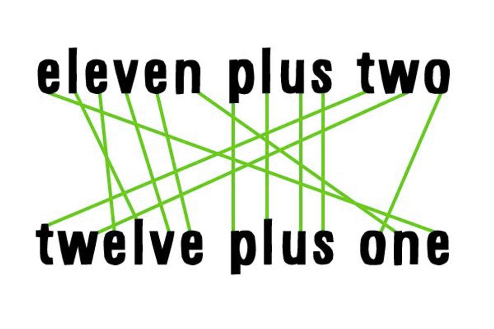 Basic math tells us that 12 plus one equals 13, and so does 11 plus two. Spell those out, however, and you see something interesting. The phrase “twelve plus one” has 13 letters in it – and those 13 letters can be rearranged to also spell “eleven plus two”.