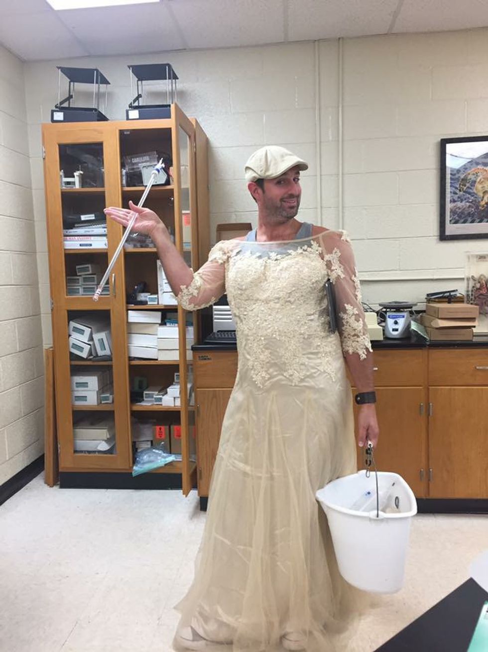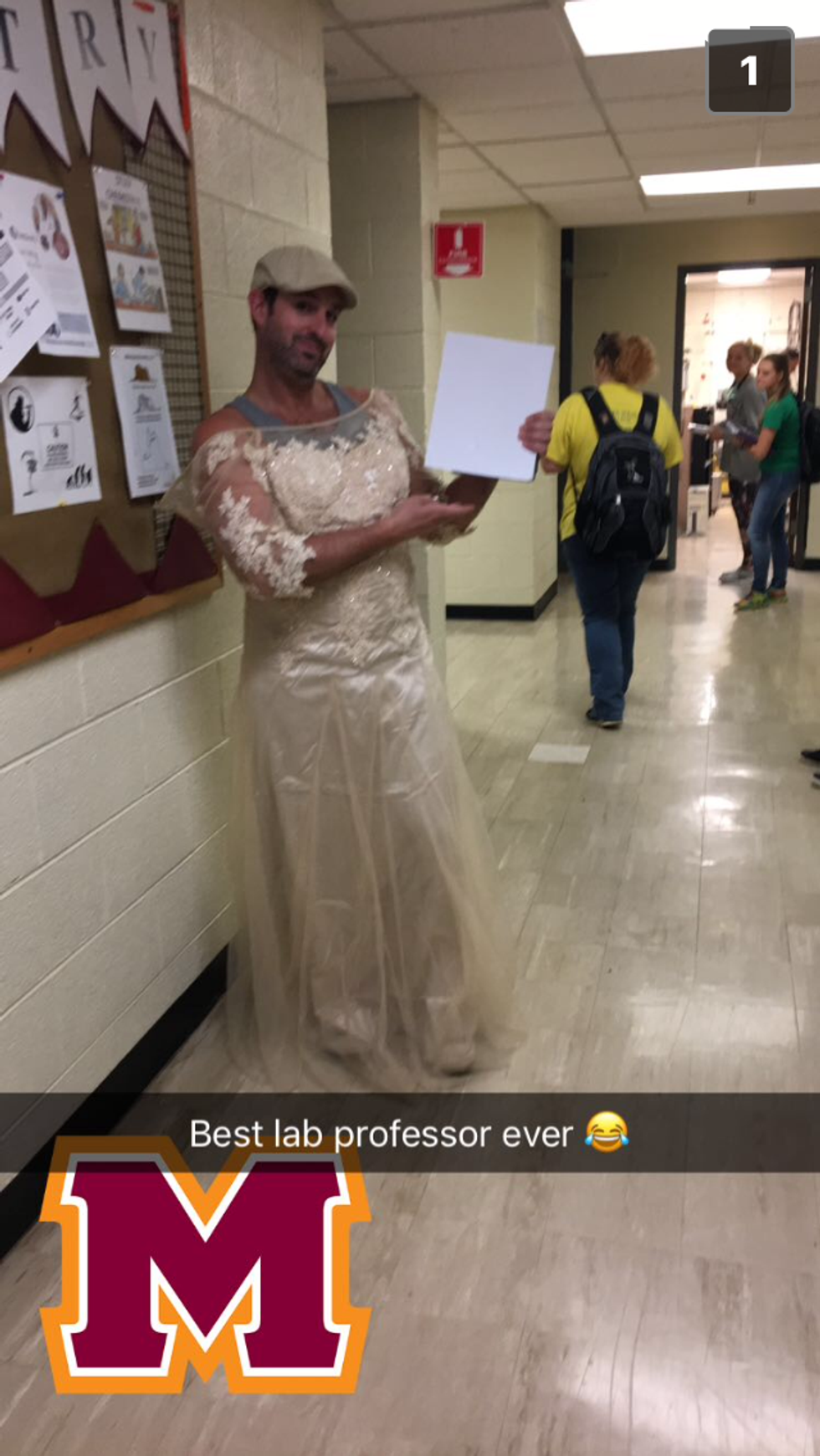 Just to make things clear, the professors are awesome and always go an extra mile to make sure we understand a topic and having fun while doing so. Of course that every professor has a different approach, some brings us brownies, others host a small pizza party before finals or jeopardy nights and then we have Mr. Martin who wears dresses to cheer us up during our lab quiz. And he, ladies and gentlemen is what we call “the extra cool professor”