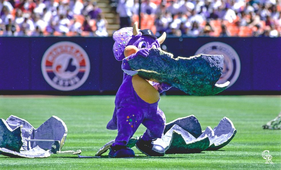 Mascot: Rockies/ Dinger (Barney's got nothing on this purple dinosaur)