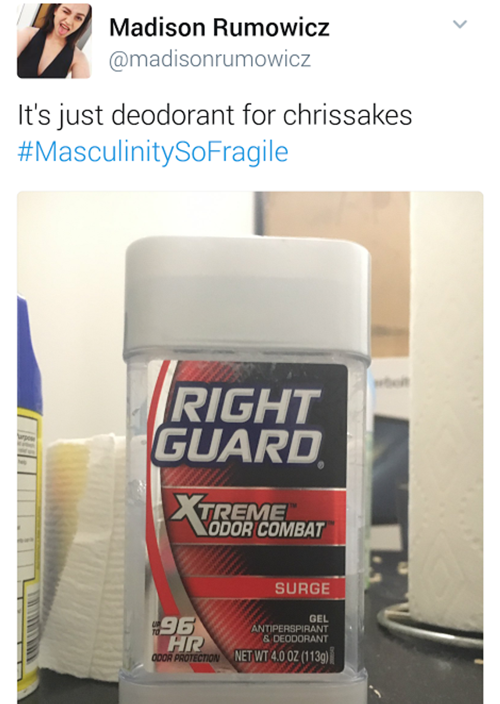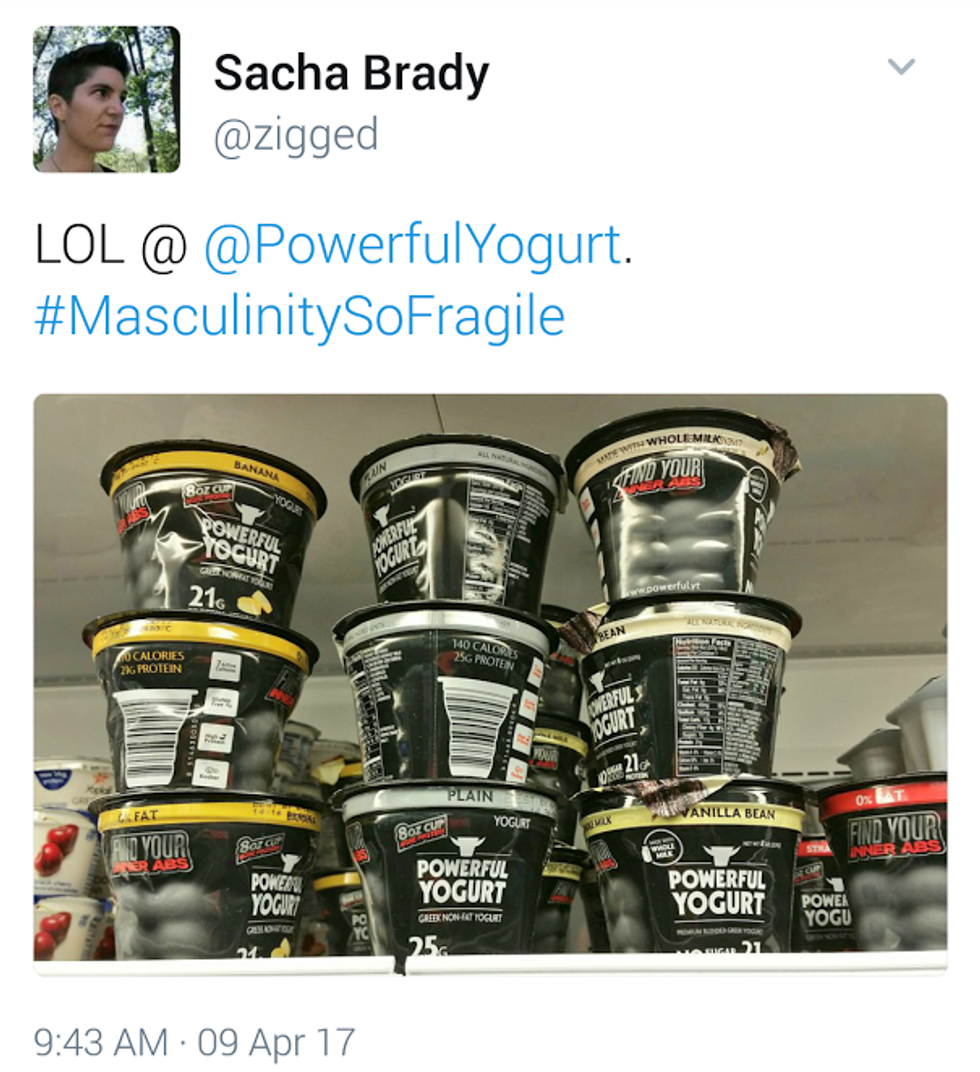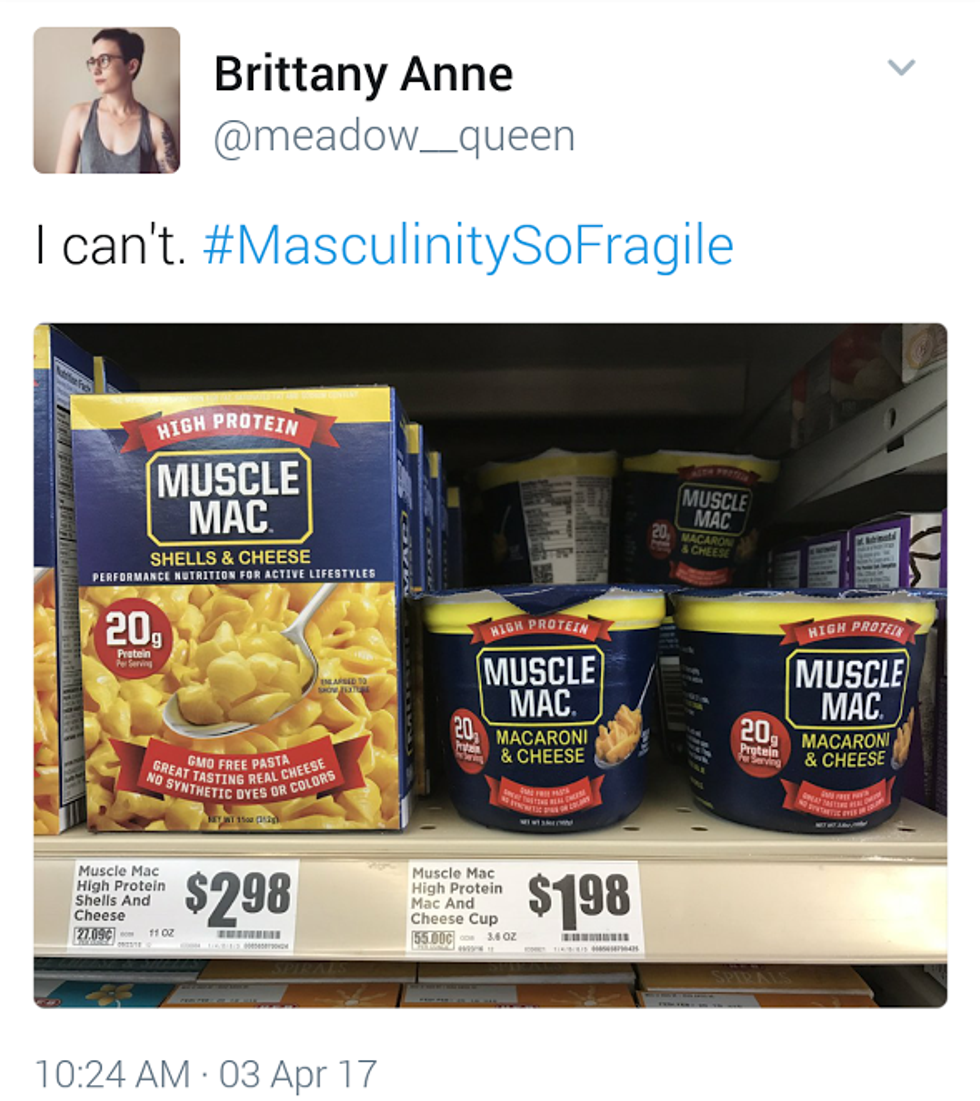 This reinforcement is so powerful that even the people participating in this trend will take products such as Muscle Mac or Powerful Yogurt and attach the hashtag to it. Nowhere on the packaging of these products does it say “for men.” Yet, people see the darkly colored packaging and intense language and automatically assume it’s “made” for men.