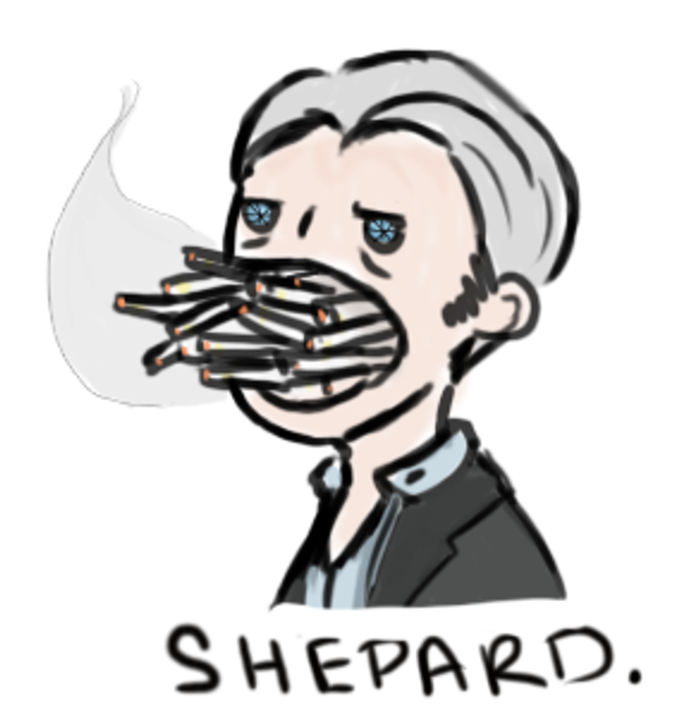 This one made one of my friends--a new fan of the series--apparently laugh so hard she cried (side note: several days later, she still thinks about it and cracks up). It gets better if you imagine him saying "Shepard" with all those cigarettes in his mouth. How many does he even smoke, I wonder...?