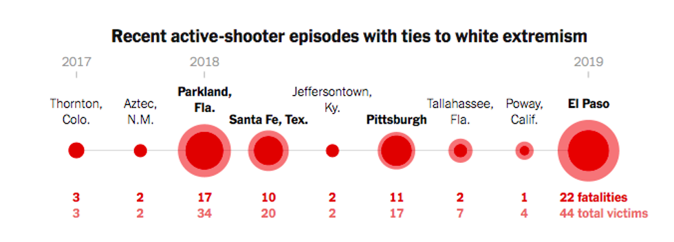 There have been at least nine mass shooters in America in the past two years who had ties to white extremism.