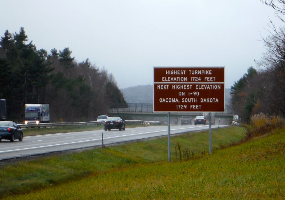 Can you believe it? Can you ACTUALLY believe it? This is crazy. When you are driving on the Mass Turnpike, you will, at a certain point, be on the highest point of the Interstate... East of South Dakota! This is wild. I just can't get over it every time I see it.