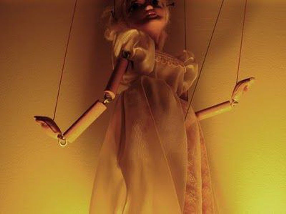 Condemned to dangle forever; tethered by unrelenting bands of which I cannot break despite countless agonizing efforts. She keeps me here, in this dark place to pull and prod as she pleases. My body is exhausted, my mind completely drained, my spirit utterly destroyed. In the quiet moments she stares eerily at me, her fearsome eyes are wide and fiercely penetrating. She leans in close and flashes a spine-chilling smile, still menacingly watching me.