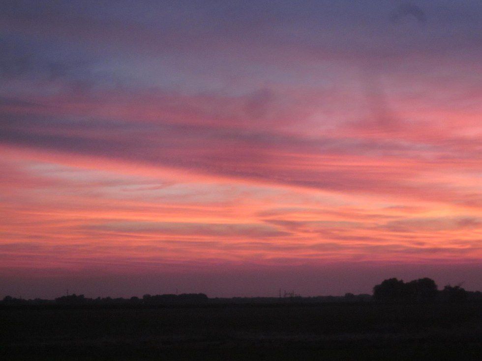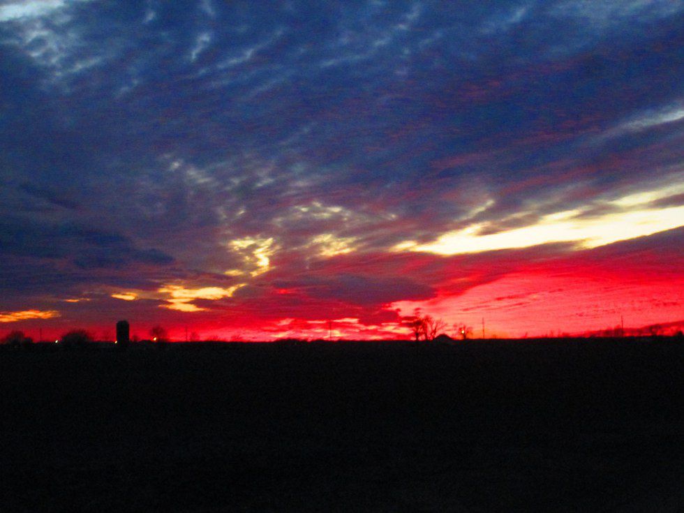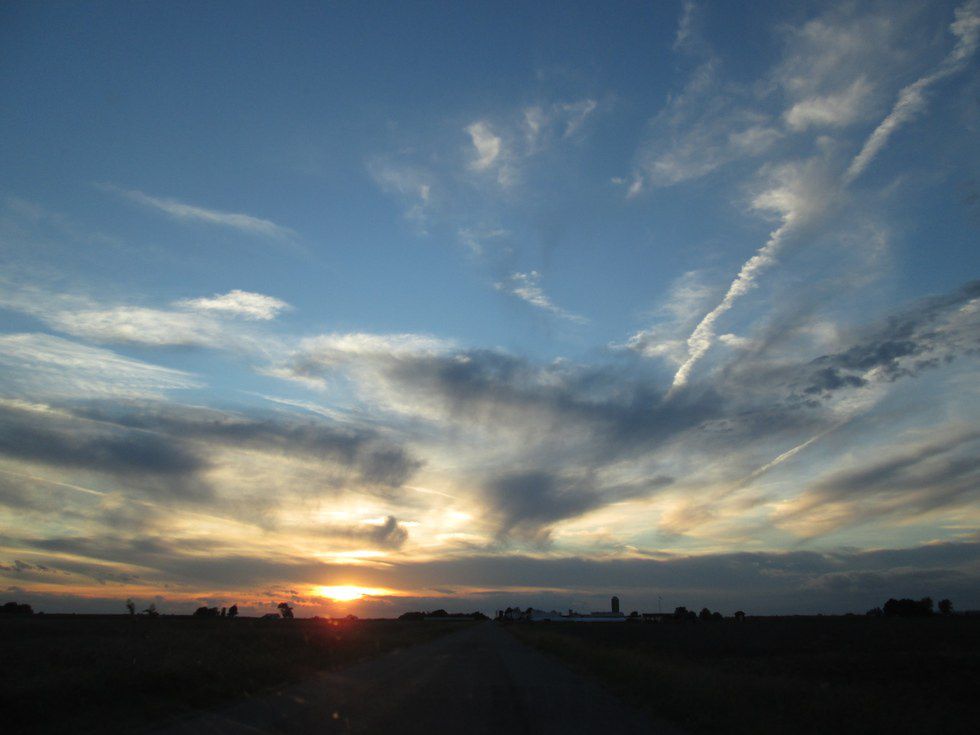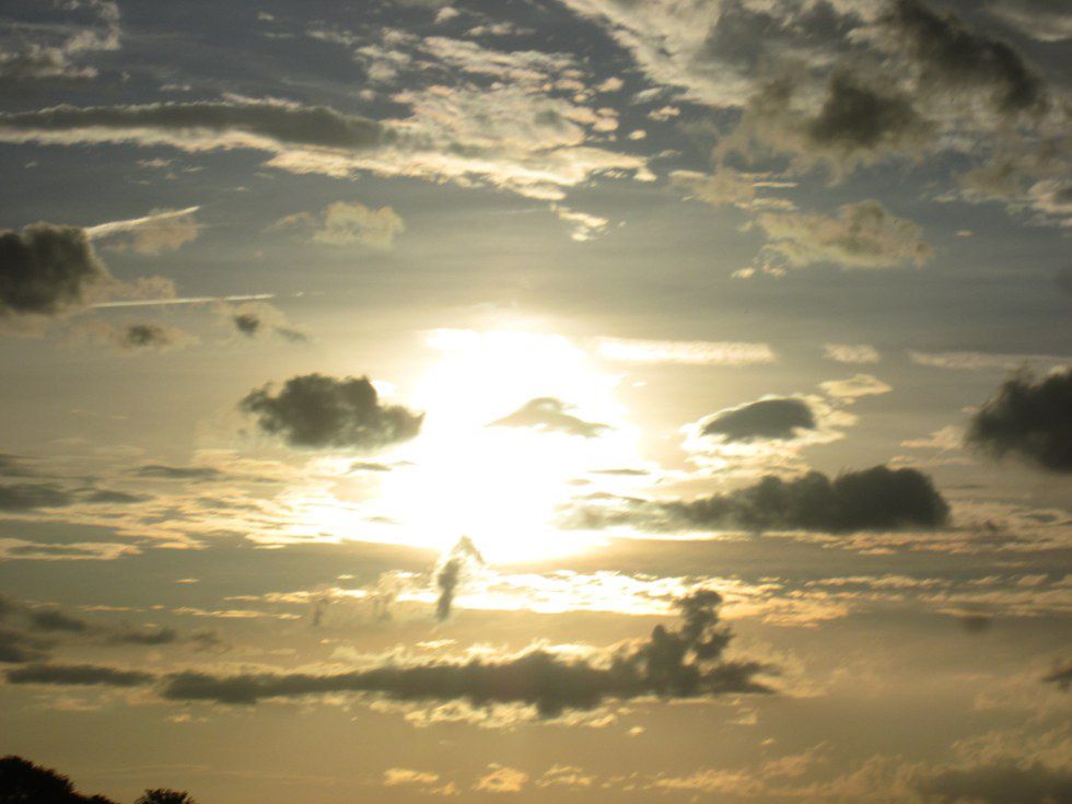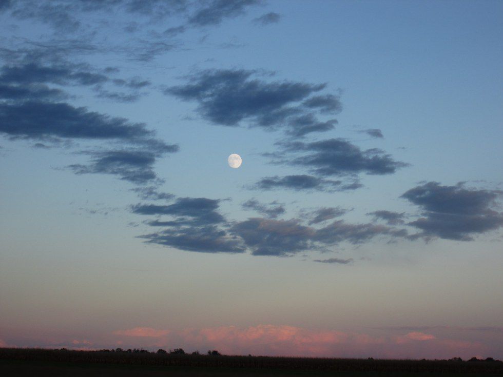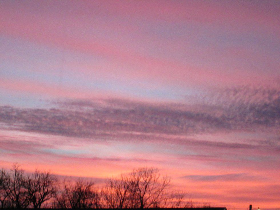 I've always loved the sky. I've always been so amazed by the variety of colors, shades, degrees of light and different shapes that appear in that big untouchable ceiling that hangs over nature. I've always loved taking pictures of the sky, of sunsets, clouds, and even a dark, stormy moody sky is fascinating to me. I've seen sunsets that look like God took His paint brush and made one solid streak of pink, purple, orange and red, one on top of each other. Sometimes there would be dots of pink in the midst of a solid purple or orange, or there would be dark bunches of little clouds over a blue and yellow background. When the sun adds to these paintings of God, it is truly magnificent. It looks like a piercing yellow light shooting through streaks and splotches with shades of blue, purple, black, red, orange and yellow. And then some days, the sky would be only blue, so very blue, without a speck or even a thought of any other shade. I have always been as amazed by an intensely blue sky as I have by the most brilliant mixture of shades. It gives me the strange feeling that the sky has always been blue and always will be. And this solid blue looks different in summer than it does in fall or spring. Then there is the white, very, very white sky of winter, without a breath of any color blowing about, and with no cloud to be seen. It looks like a giant bleached sheet, hanging up above the earth. I like to imagine God up above the world each morning, planning out what he is going to make the sky look like that day, as if He is a painter and takes delight in making masterpieces on the canvas of the sky for all His people to look up at and be pleased and uplifted by. And then sometimes, on dark or rainy days, the sky looks like it's mourning, as if it is pained by all the sadness and sin of the world that it looks down on. It seems to be sobbing, its tears streaming down from the clouds. It seems to be so near and heavy and low some days, I feel like I could reach up and touch it. And then other times, when flashes of lighting streak above our heads, the sky seems to be charged with power as though it's been plugged into an electrical socket. I remember when I flew in an airplane, it was so amazing and unreal to go sailing through the clouds and see white on either side of me and to look down from the sky and see the tiny houses and farms and the fields of green, brown and other colors, which looked like patches on a huge quilt. And then, when the day ends, God's majesty is revealed again in the brilliant moon, sometimes a full glowing circle, at other times, only a sliver. and in stars the speckle the dark sky, twinkling like lights on a Christmas tree. And the thing about the sky the baffles and amazes me the most, is that every single day, the sky is different. God never paints the exact same picture. He always gives us a new original masterpiece to gaze up as a reminder to us that He is the One who keeps all of us in the world, truly alive.