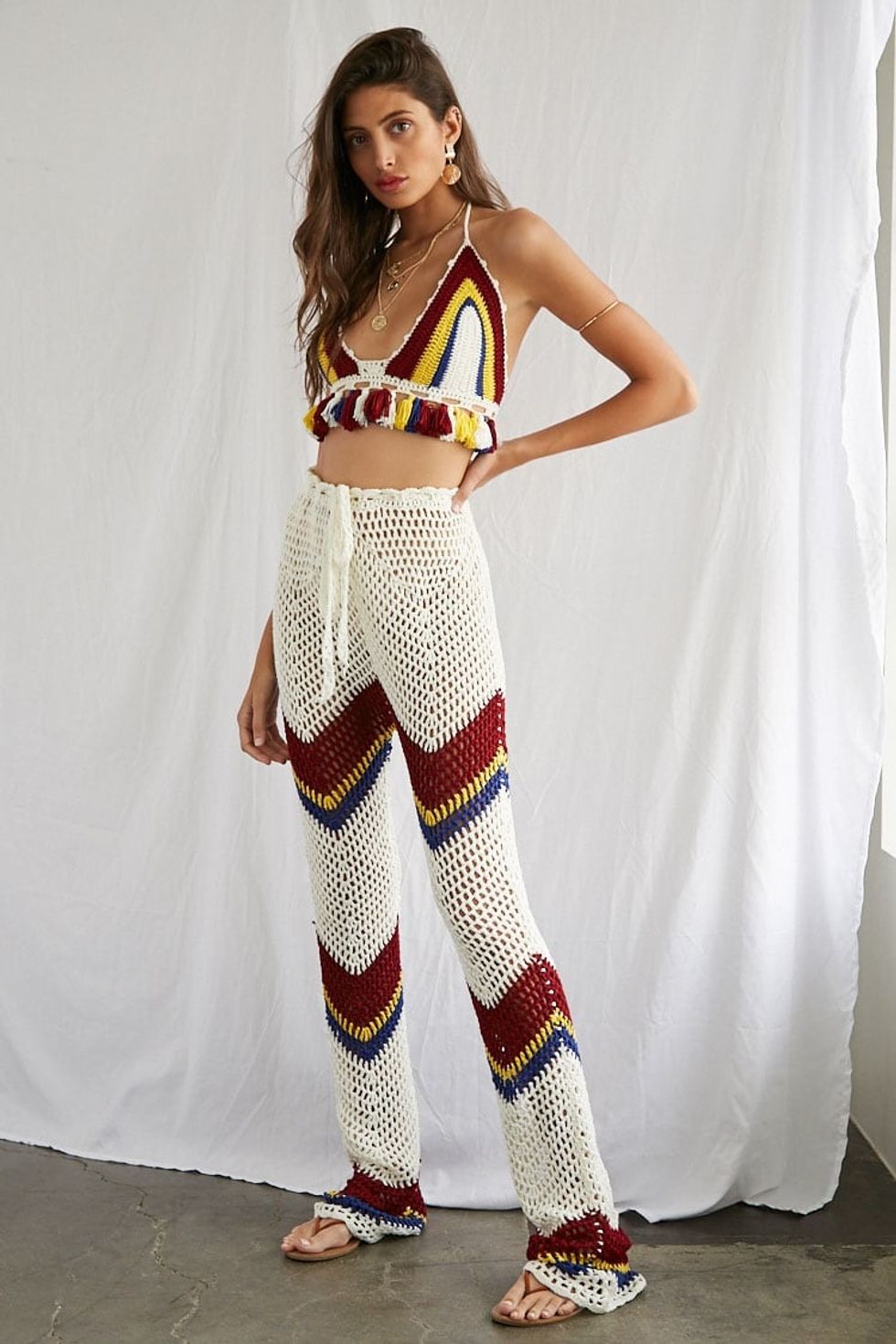 If you're looking for that ultimate free and breathable ensemble, this is it. The knitted crop top and pants might just be your most comfortable option slightly breezy summer days.