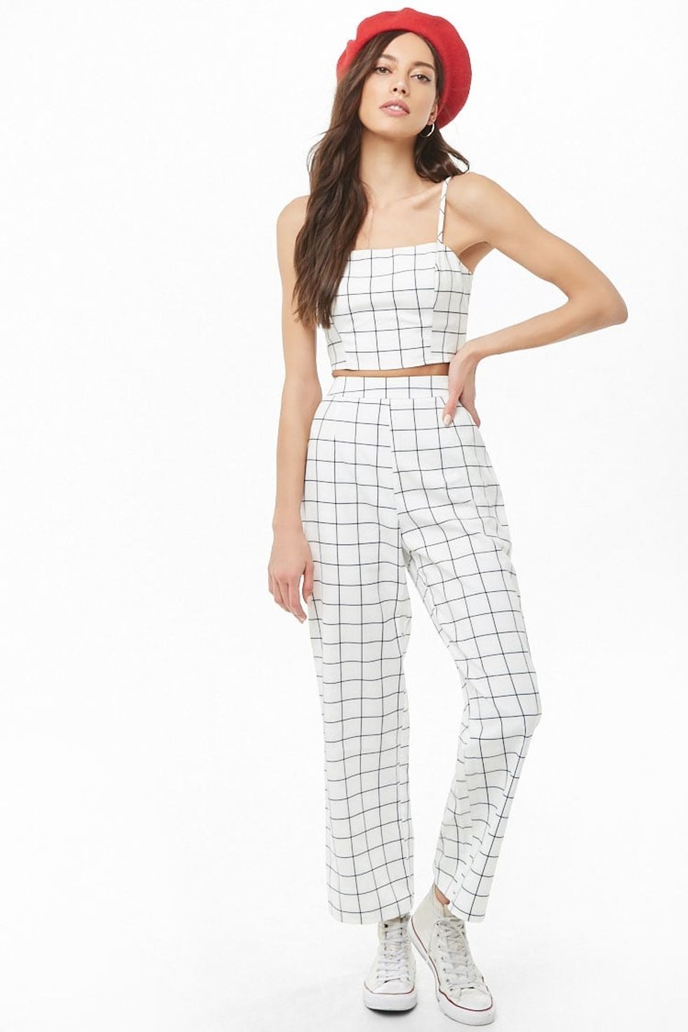 Who would've thought that graphing paper could ever be so stylish? Next time your family has an outdoor gathering, wear this cropped cami and pants combo.