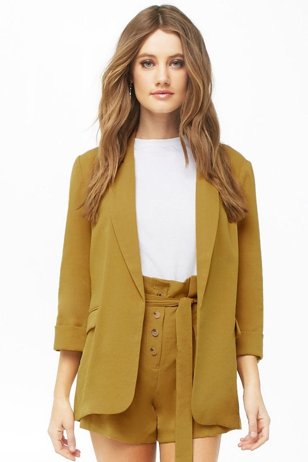 We're taking business casual to a whole new level — blazer and paperbag shorts as a set. If you intern or work at a more creative workplace, this is totally chic attire to strut around in.