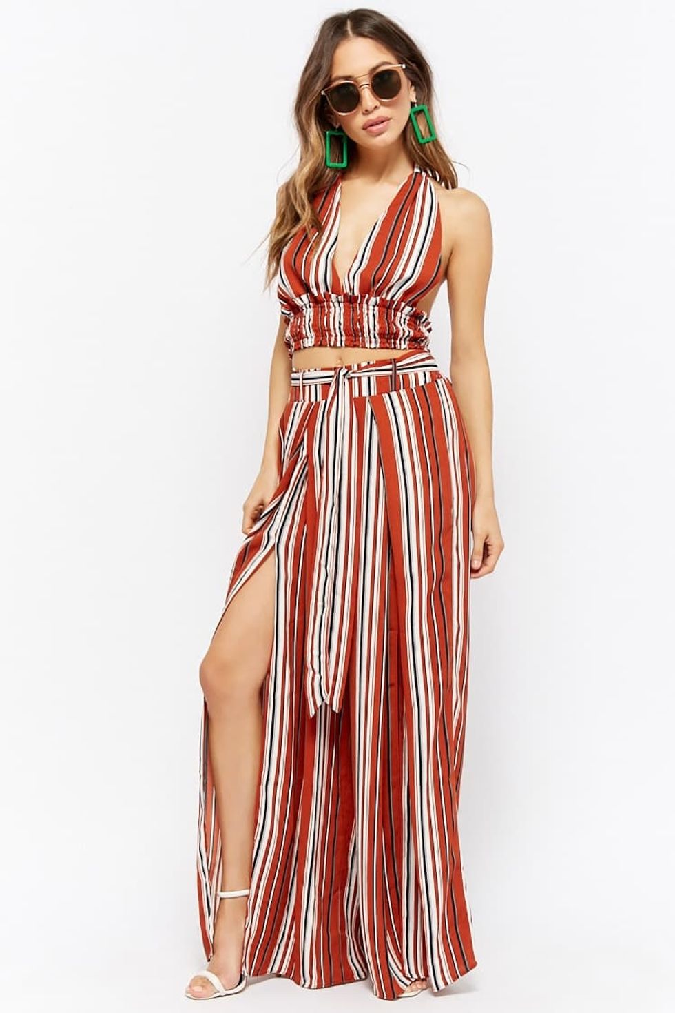 Backless and slits? An innovative concept, TBH. This striped set lets your skin breathe freely — your back can cool off and your legs aren't contained!