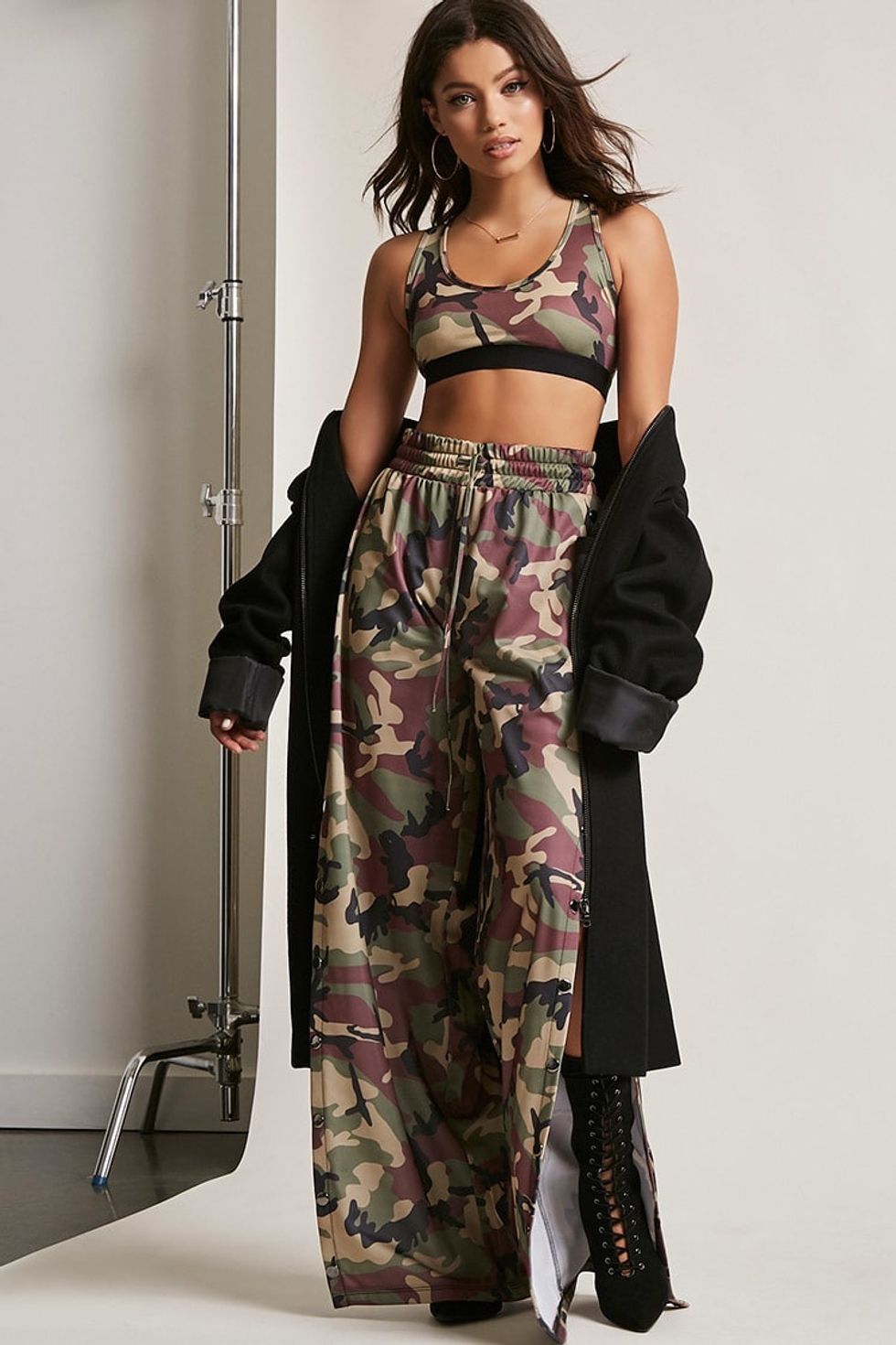 Athleisure is another huge trend right now, and it has become everyone's favorite go-to style. This camo pair is your next clubbing ensemble — thrown on a mesh crop top to complete the look.