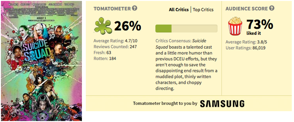 Ever since the heavily hyped Suicide Squad movie had its theatrical release on Friday, a new fight has made its way to the forefront of superhero and super villain rivalry. No, not the longstanding enmity between Batman and The Joker, or even that of perpetual comic book rivals Marvel and DC, but rather a battle between movie critics and fans for the reputation of one of the most highly anticipated releases of the year.
