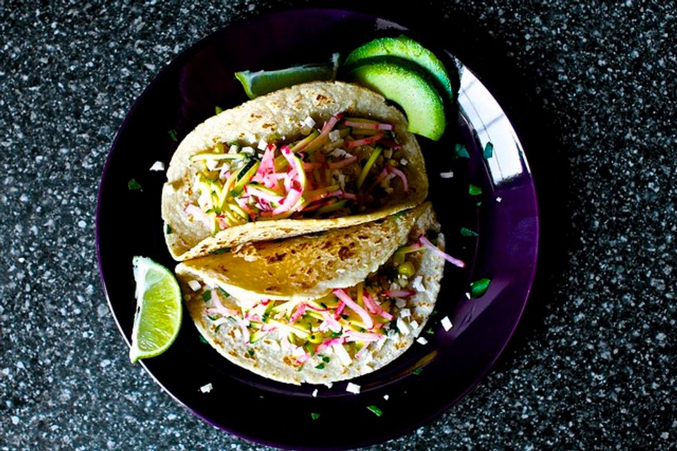 3. Charred Corn Tacos with Zucchini-Radish Slaw