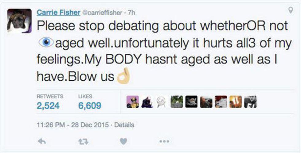 Fisher was unapologetically uncensored. She did not care. Her transparency after going through addiction and rehab made her writing genuine and pure, even though it was pretty un-pure, if you know what I mean. Just recently in November 2016, she released her memoir The Princess Diarist, a book full of direct pages of Fisher’s personal journal that she kept while filming Star Wars: Episode IV - A New Hope. Reading this book makes you feel closer to young Fisher and to her Leia character.