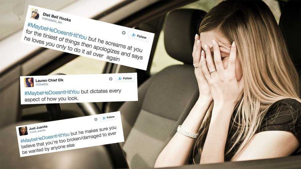Domestic violence is much more than hitting, their words can hurt just as badly as a knife. While the campaign is called #MaybeHeDoesntHitYou, it's important to know that both men and women commit domestic violence. There are so many options for help that so many people do not take advantage of. You can contact the National Domestic Violence Hotline at 1-800-799-7233 and they can help you get the help you need.