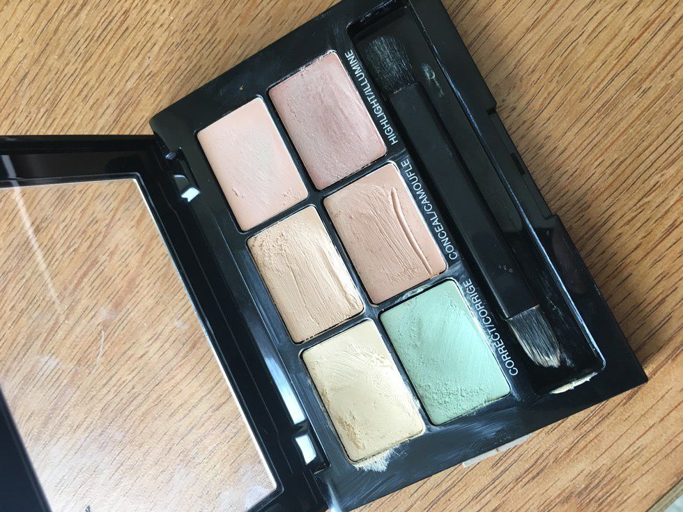 I have not used the two highlighting colors much, but I have used the green and yellow correcting shades as well as both concealing colors as well. The green covers up redness while the yellow covers up dark circles and brightens as well. Below are two of the pictures of my palette, I have been using it for over two weeks now.