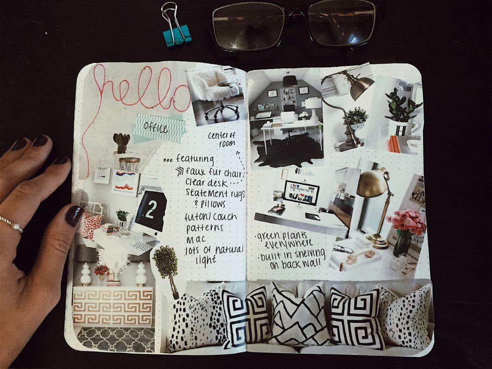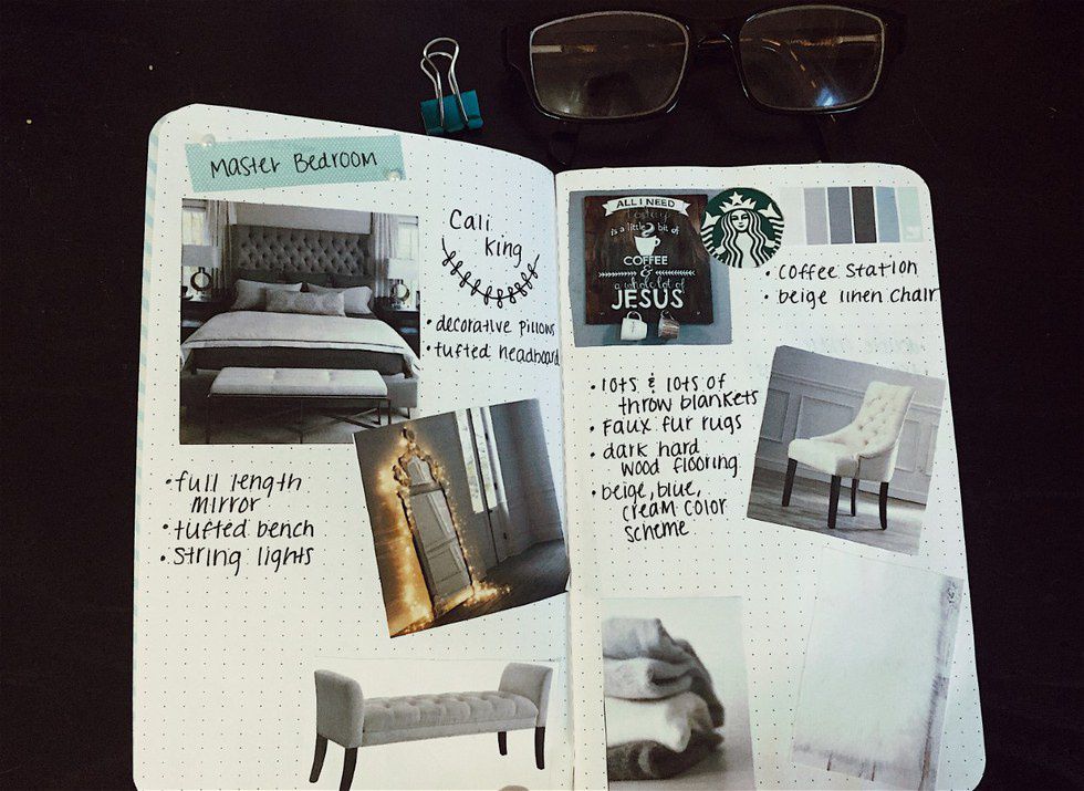 I love printing out Pinterest photos of house designs and decor and pasting them in my Maybooks to create different ideas and inspire creativity. Here you can see how I used them to design a master bedroom and a home office.