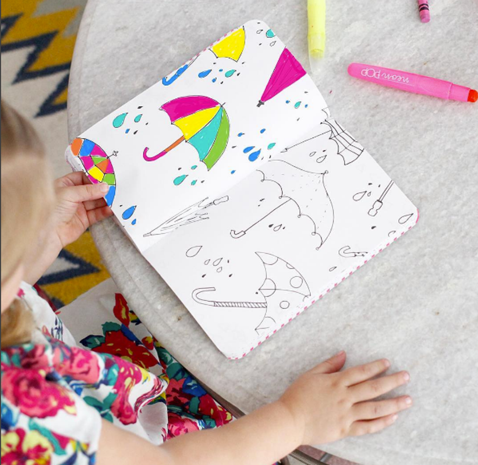 There are pages for adult and kid coloring as well as handwriting practice. It would be cool to look back and see how their artistic abilities and handwriting develops overtime!