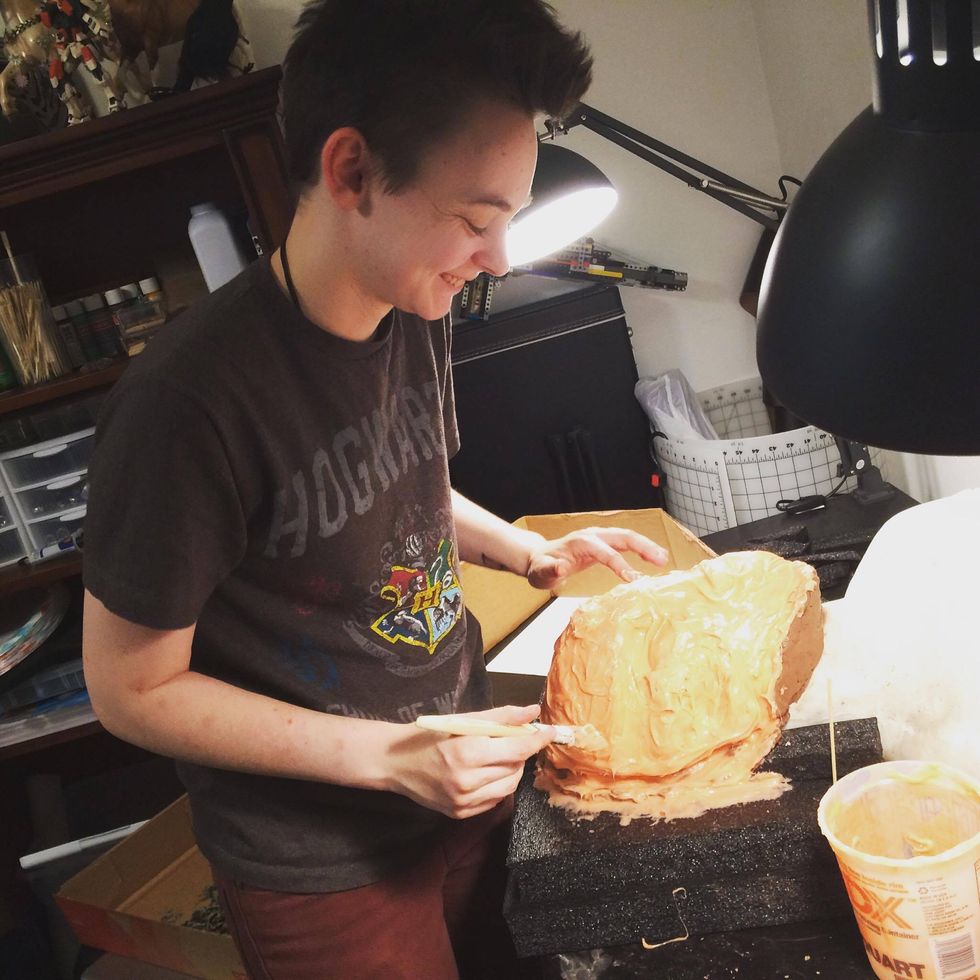 While Matthew sews, his partner Aeron sculpts the props and other hard pieces for the costume; though he says they both try to do as much of every part of the process as they can. With a background in Special Effects Makeup, Aeron is the perfect compliment to Matthew. Aeron painstakingly sculpts each piece by hand, ensuring that it will work with Matthew's design as well as fit the measurements of the customer. From masks to armor to prop weaponry, Aeron can sculpt it all. Once painted, the finished costume can be assembled and shipped to the buyer.