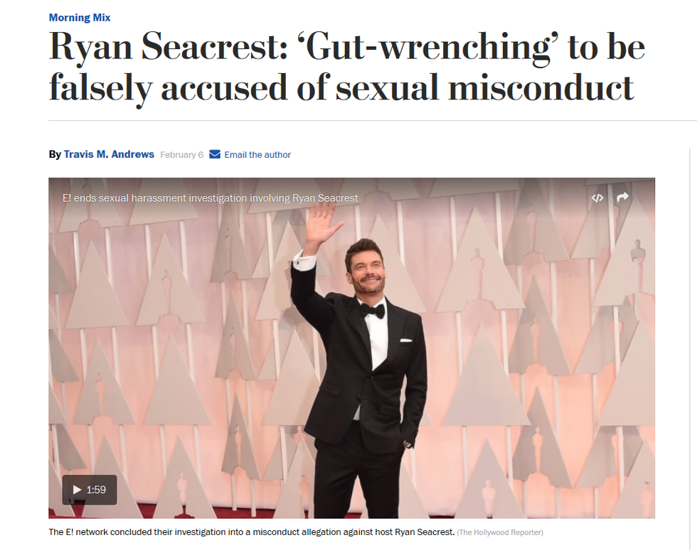 (Radio personality, Ryan Seacrest was falsely accused of sexual misconduct by former stylist back in November. Allegedly, $15 million was requested in exchange for her silence, however, these reports have yet to be confirmed by a credible source.)