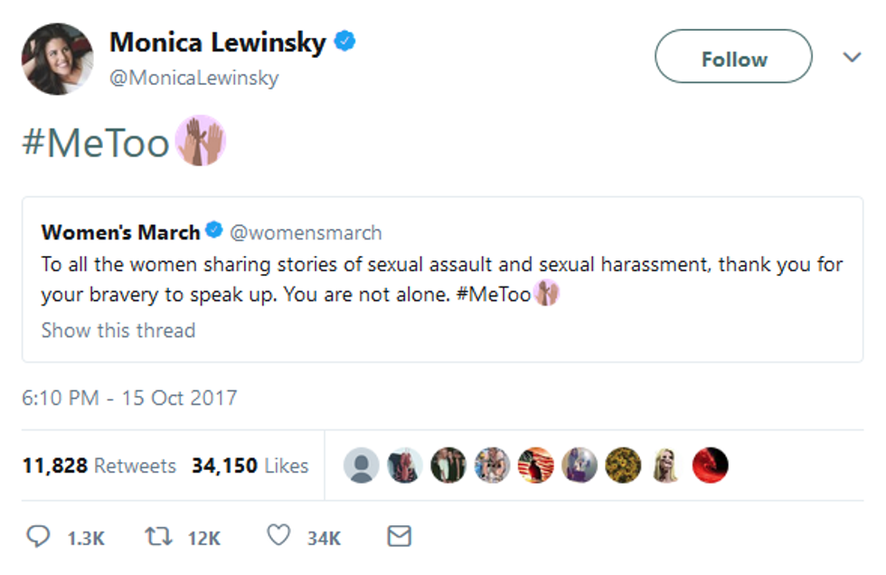 (Actress, Alyssa Milano, ignites #MeToo- putting a name to the movement.)
