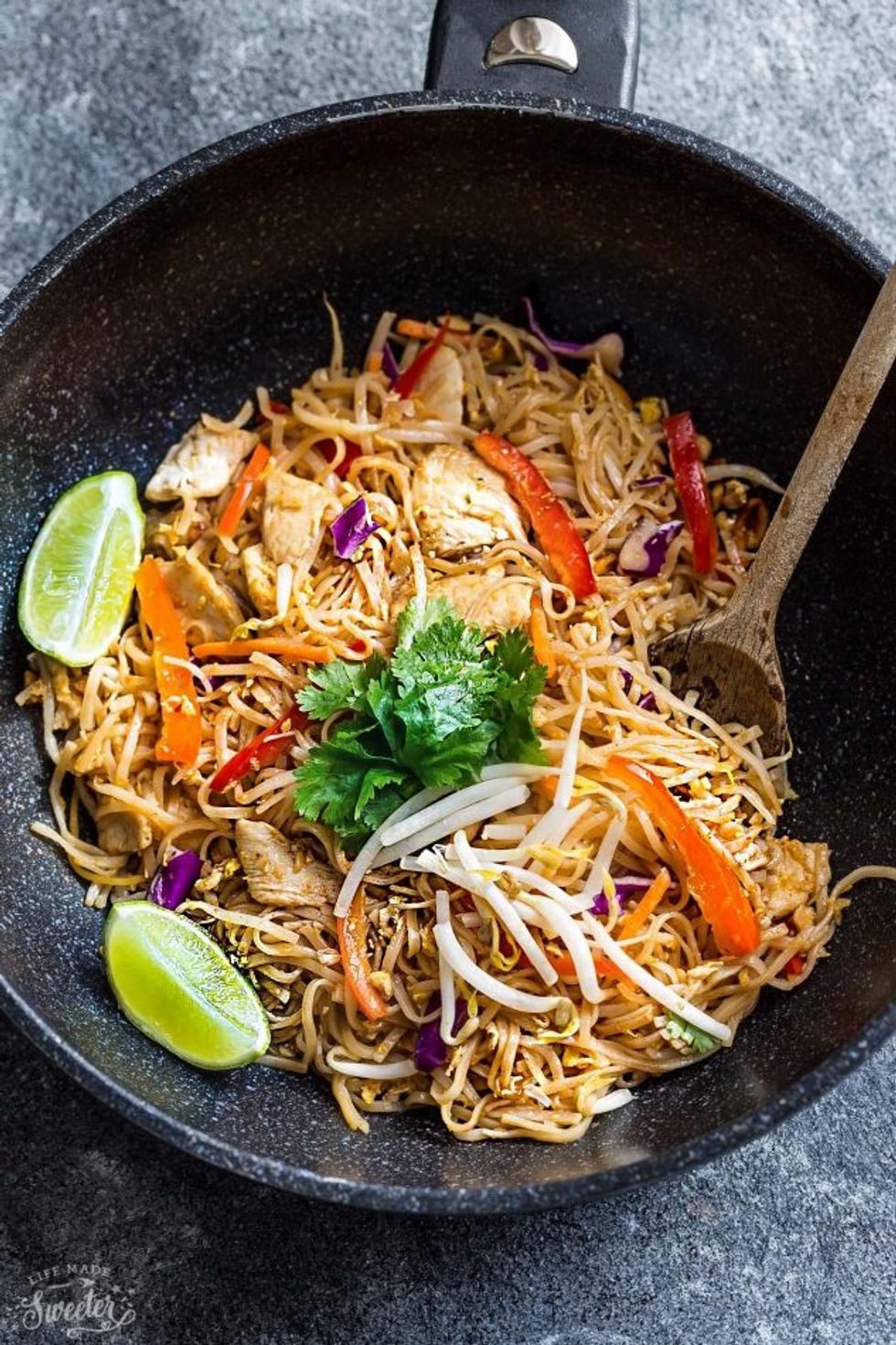 Pad Thai is a very tasty dish! If you get tired of chicken you can always make it with pork, beef, or seafood.