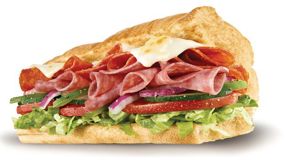 6-inch Spicy Italian sub and 1 cookie. Or ask what their featured $5-Footlong is.