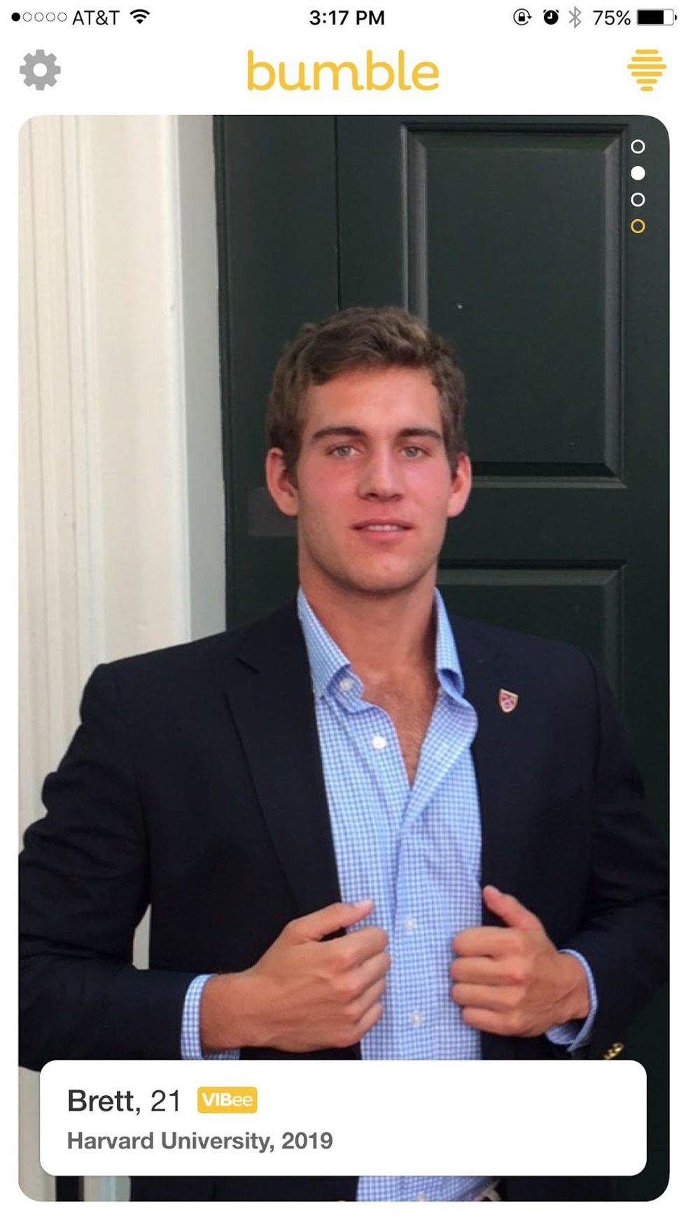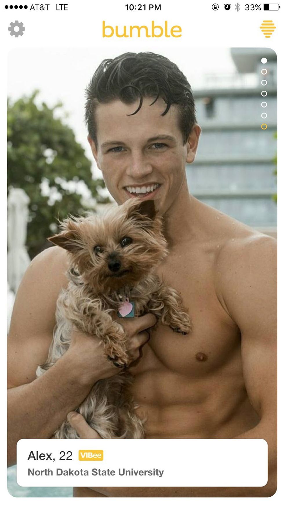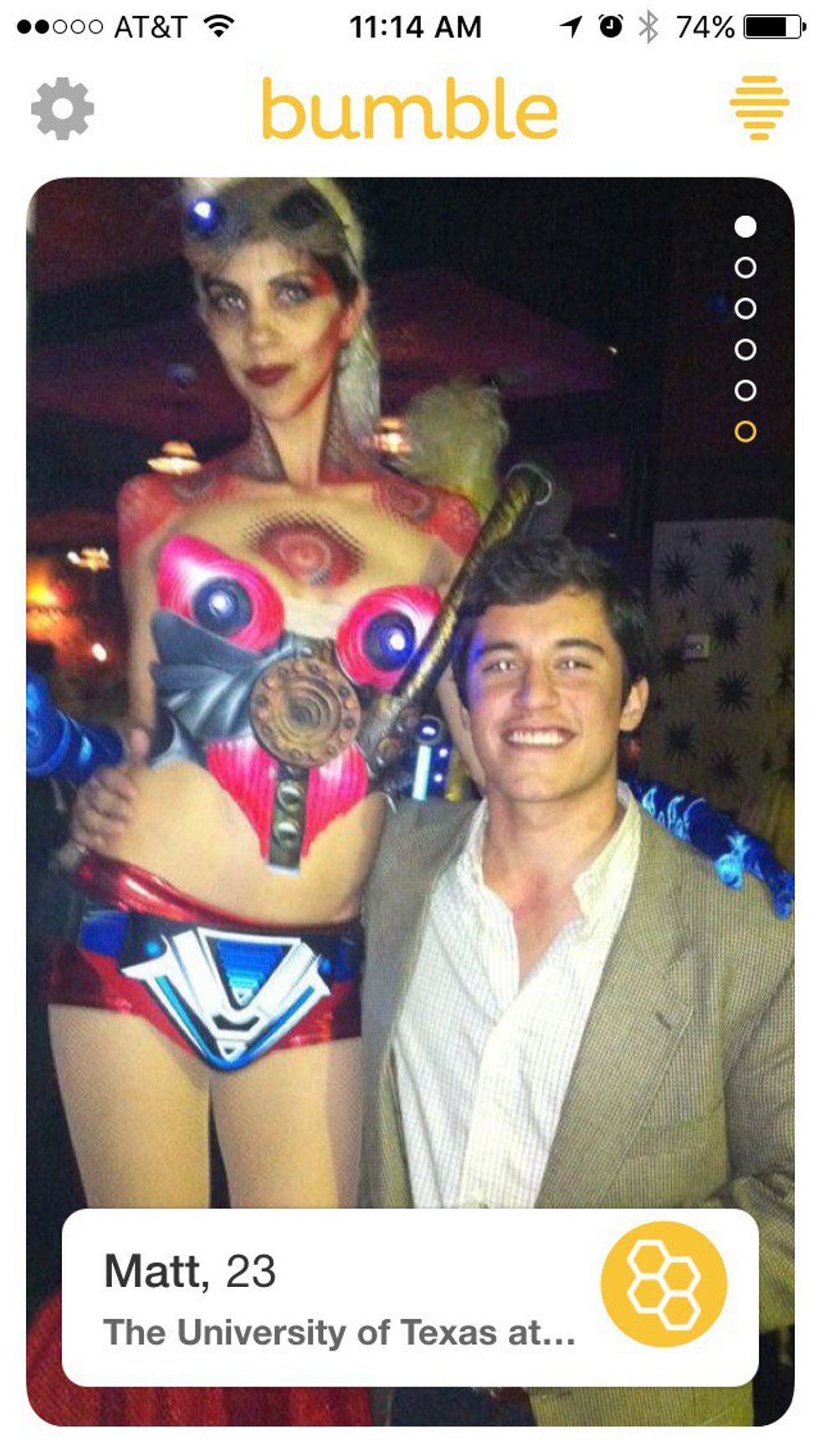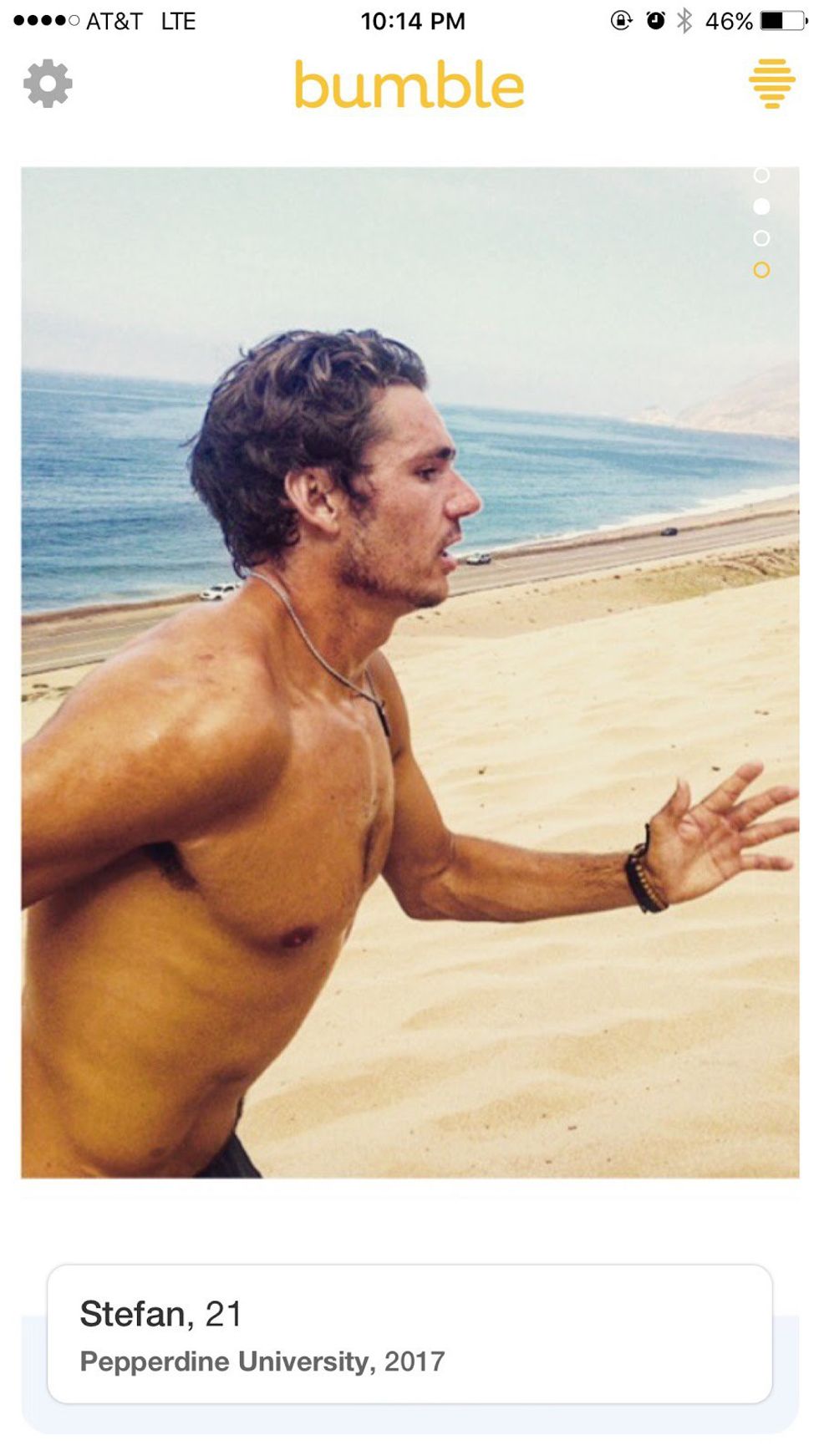 That smile, full disclosure, I may be blushing as I Bumble right now. Drinks? Stargazing? Harambe memorial planning? Matt, I don’t care. I’m yours.