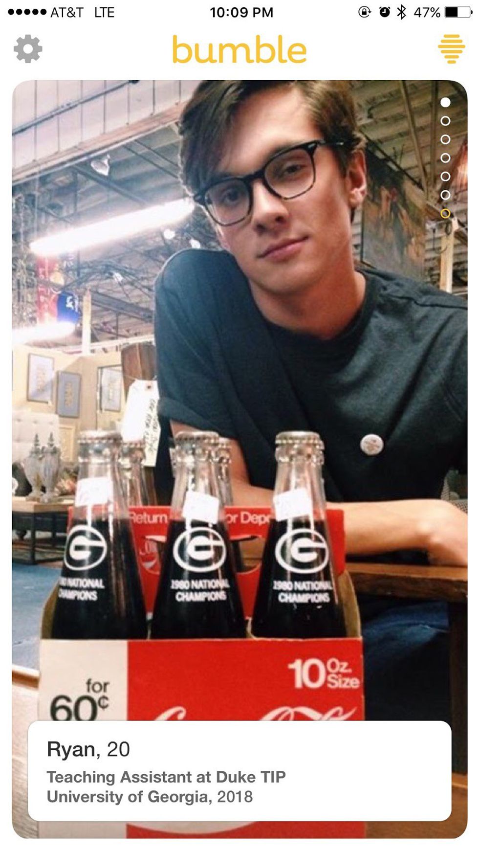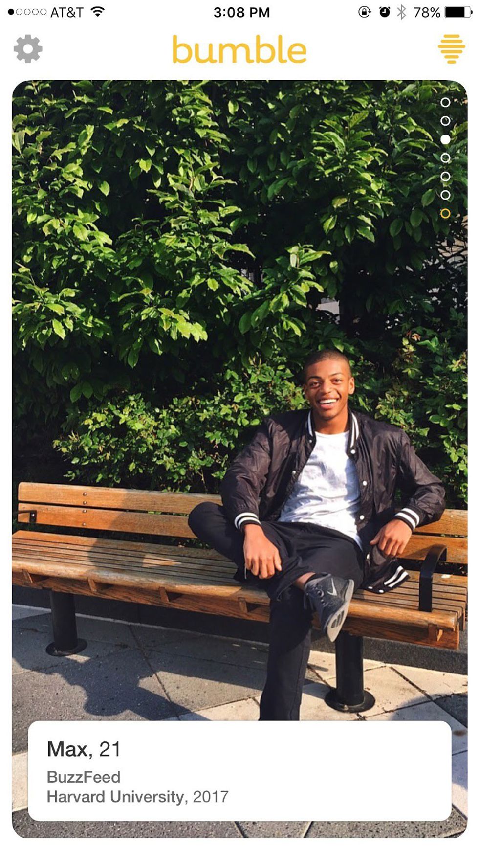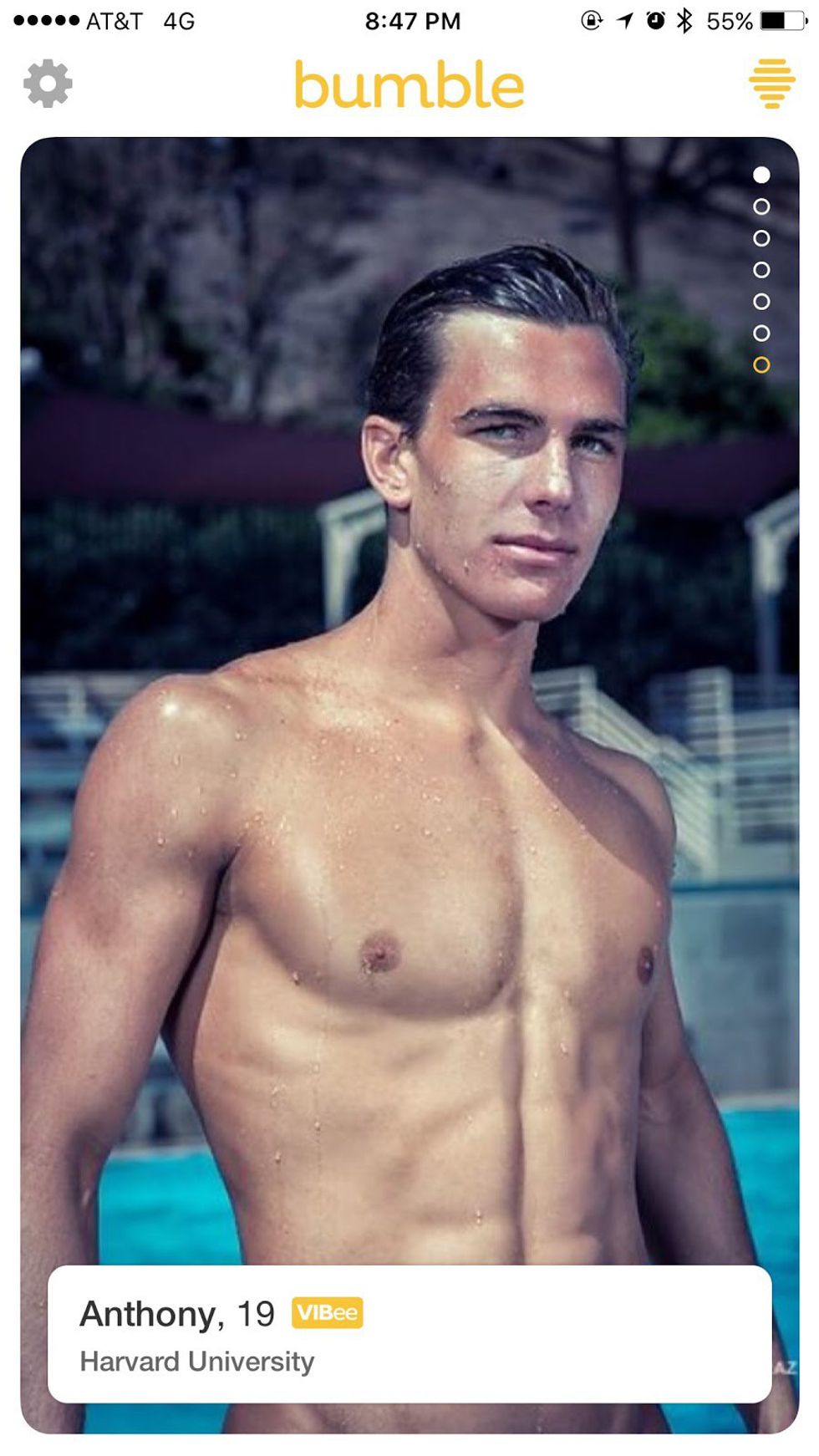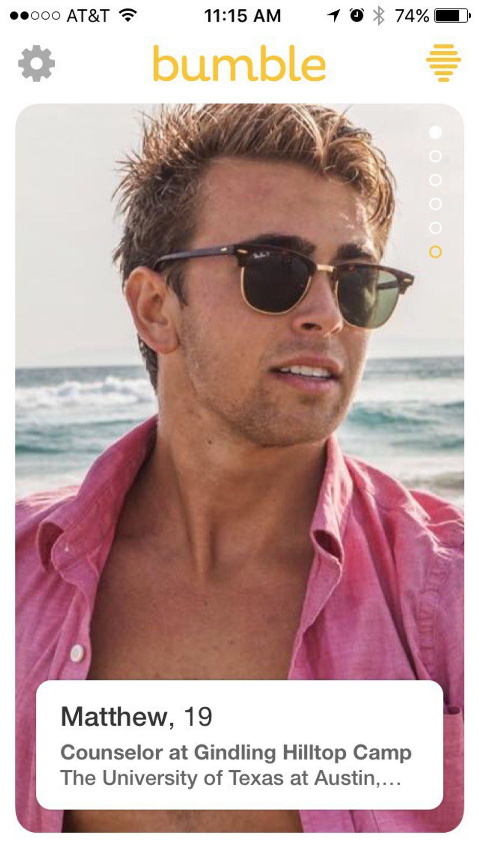 That smile, full disclosure, I may be blushing as I Bumble right now. Drinks? Stargazing? Harambe memorial planning? Matt, I don’t care. I’m yours.